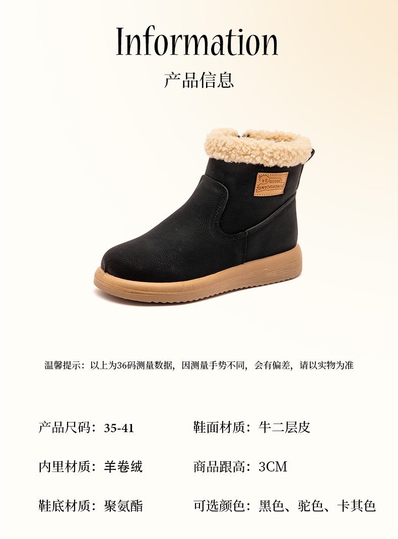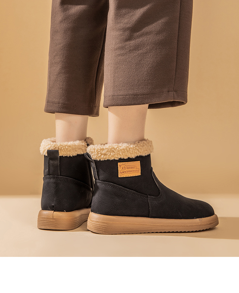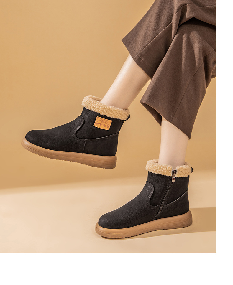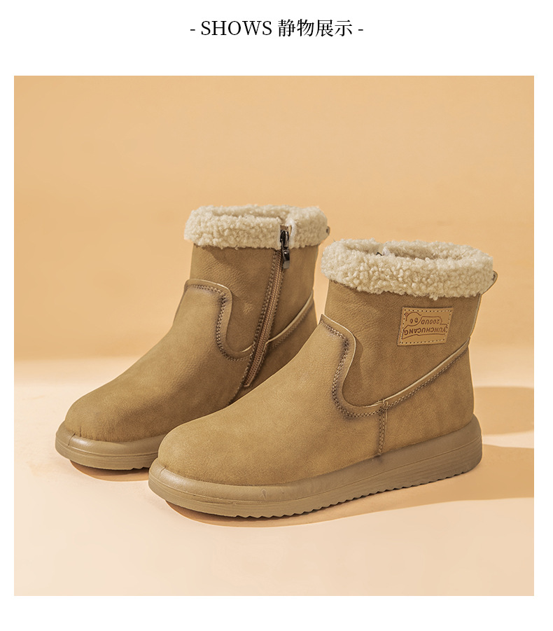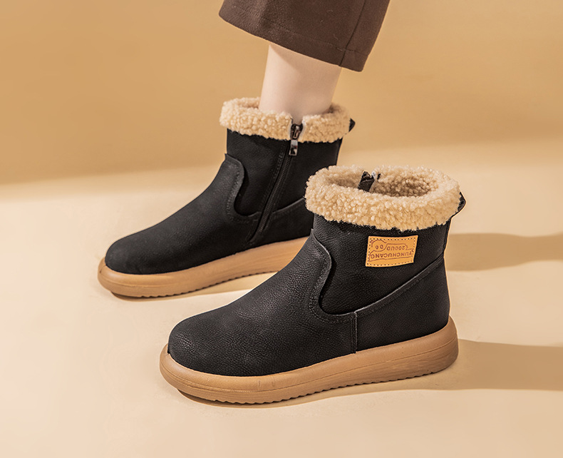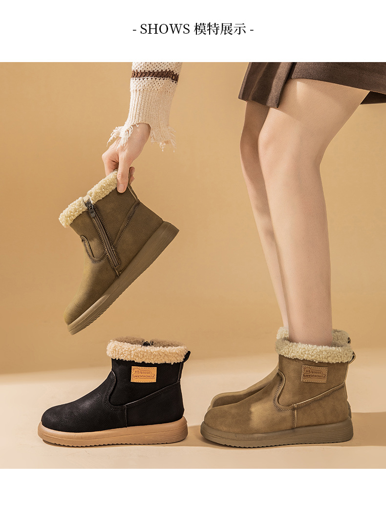 平底短筒雪地靴女2024新款冬季保暖羊羔毛加绒棉鞋复古软底短靴子