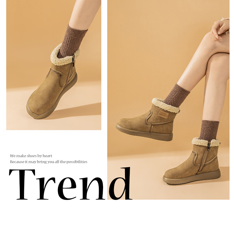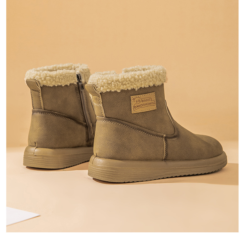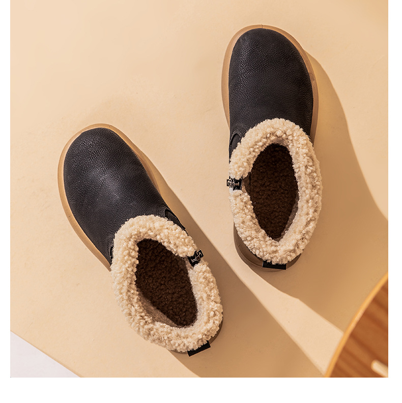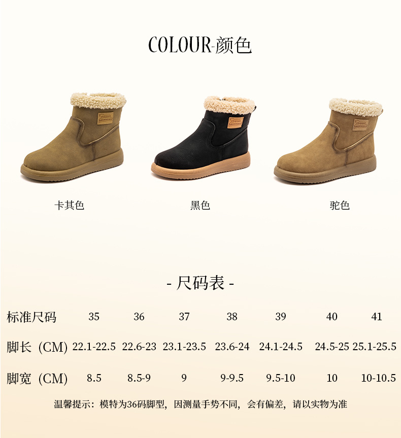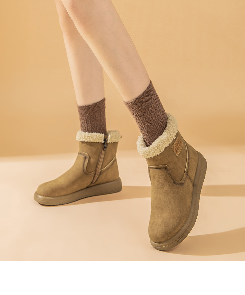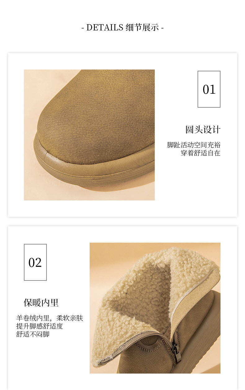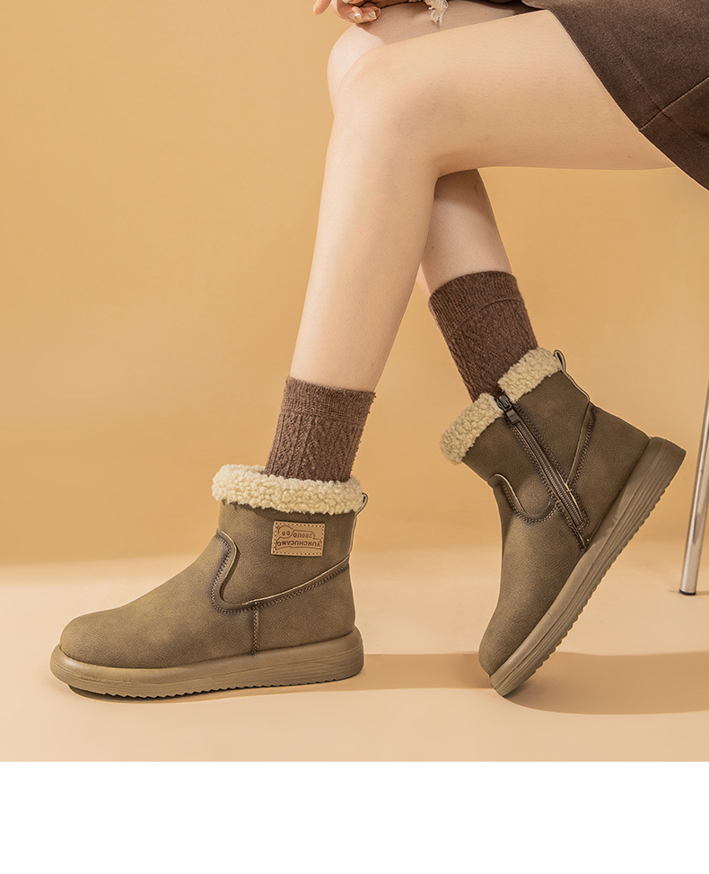 平底短筒雪地靴女2024新款冬季保暖羊羔毛加绒棉鞋复古软底短靴子