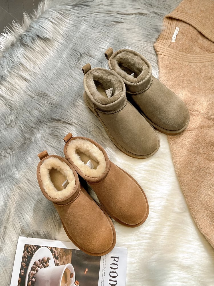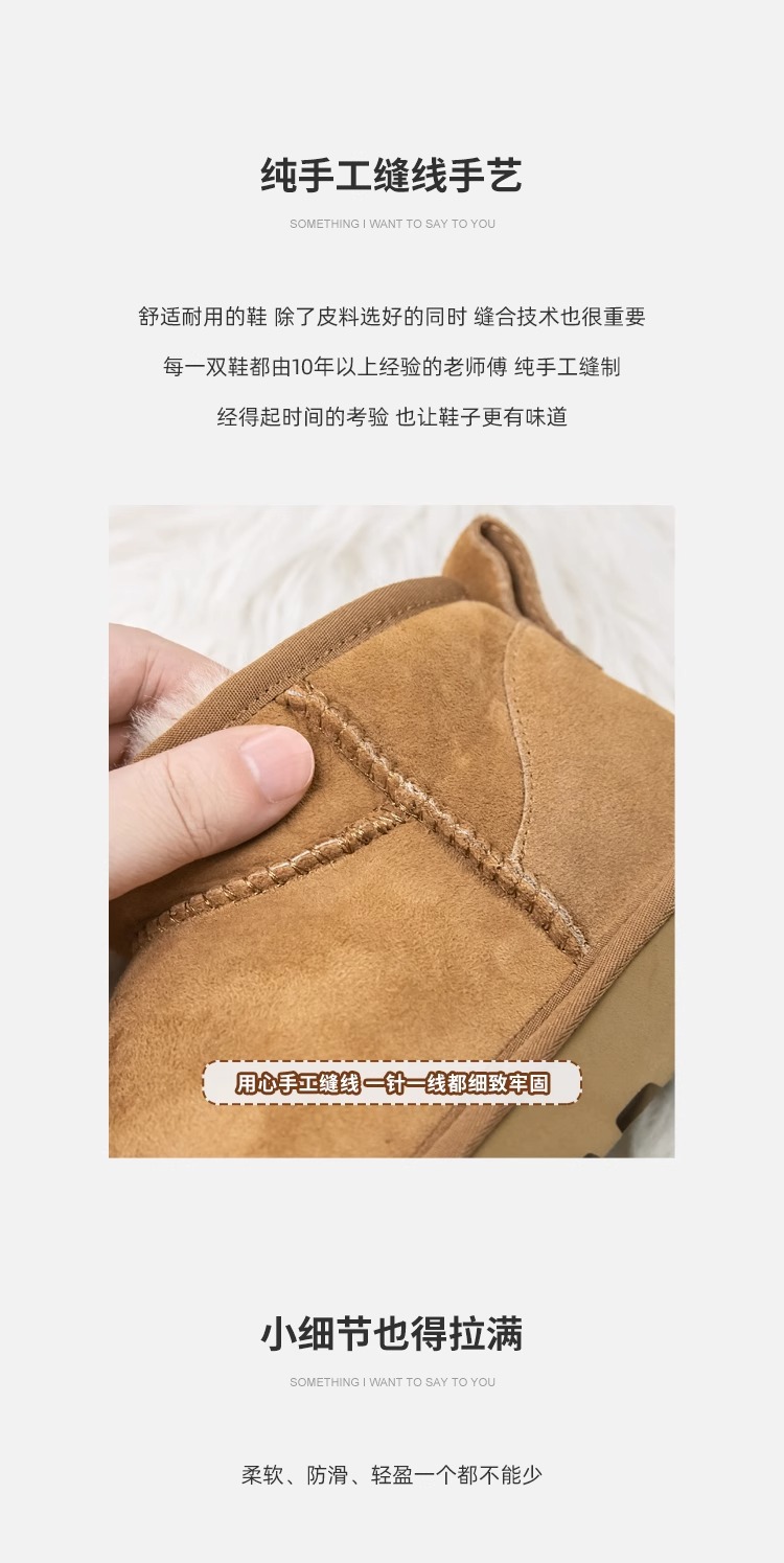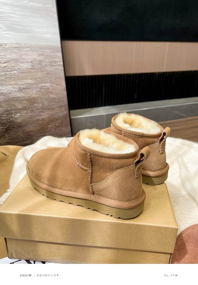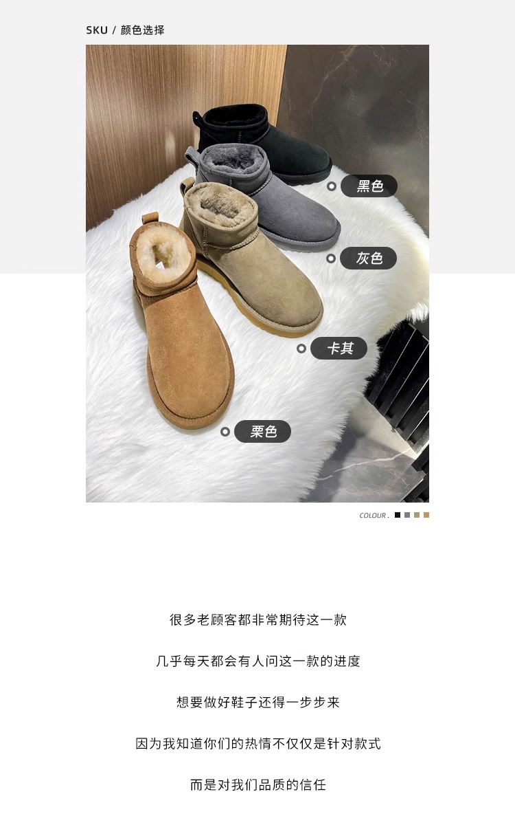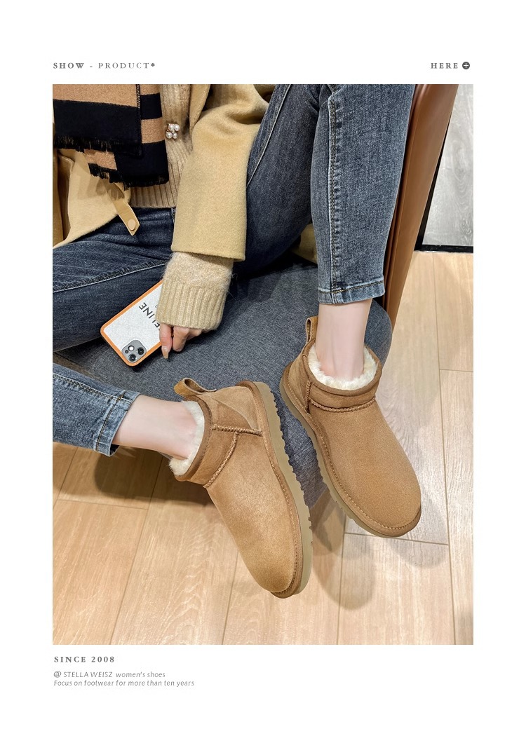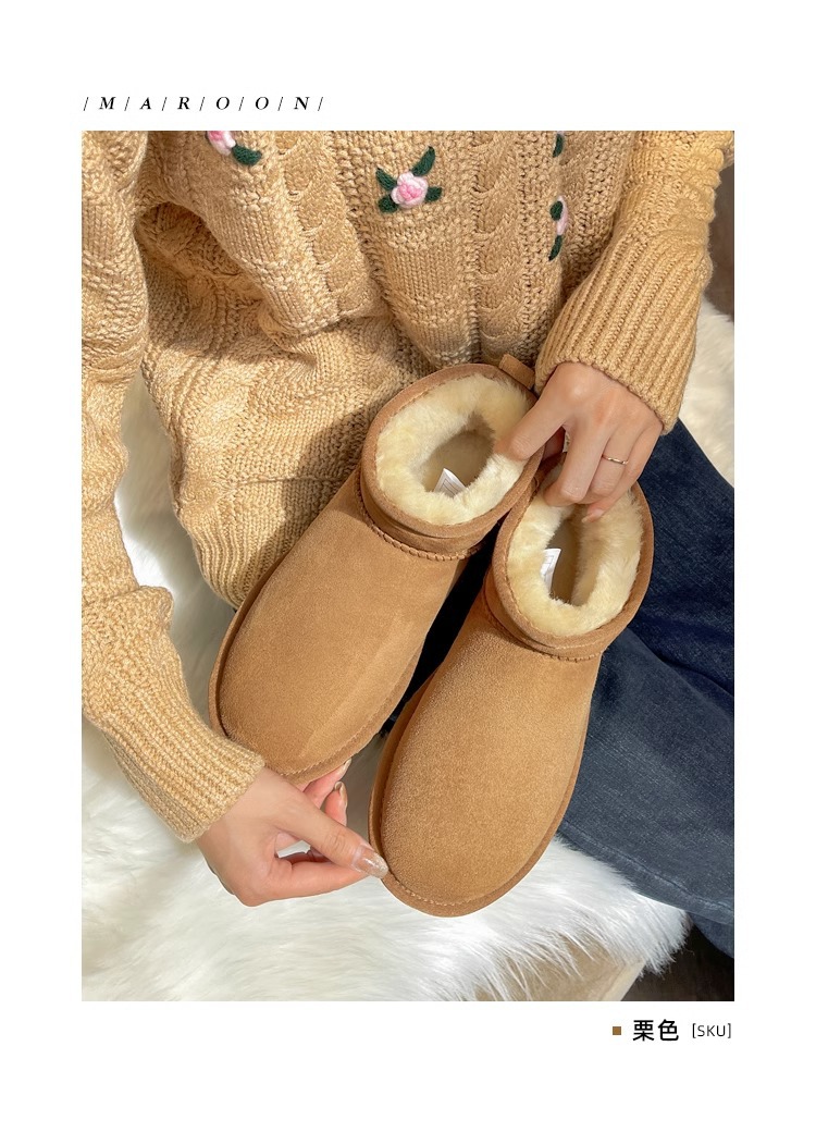 谷韵丨冬季真皮毛一体雪地靴女mini短筒防滑低帮雪地棉情侣短靴子