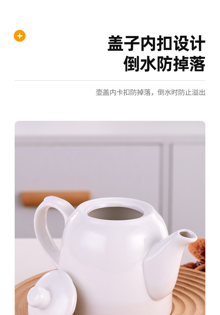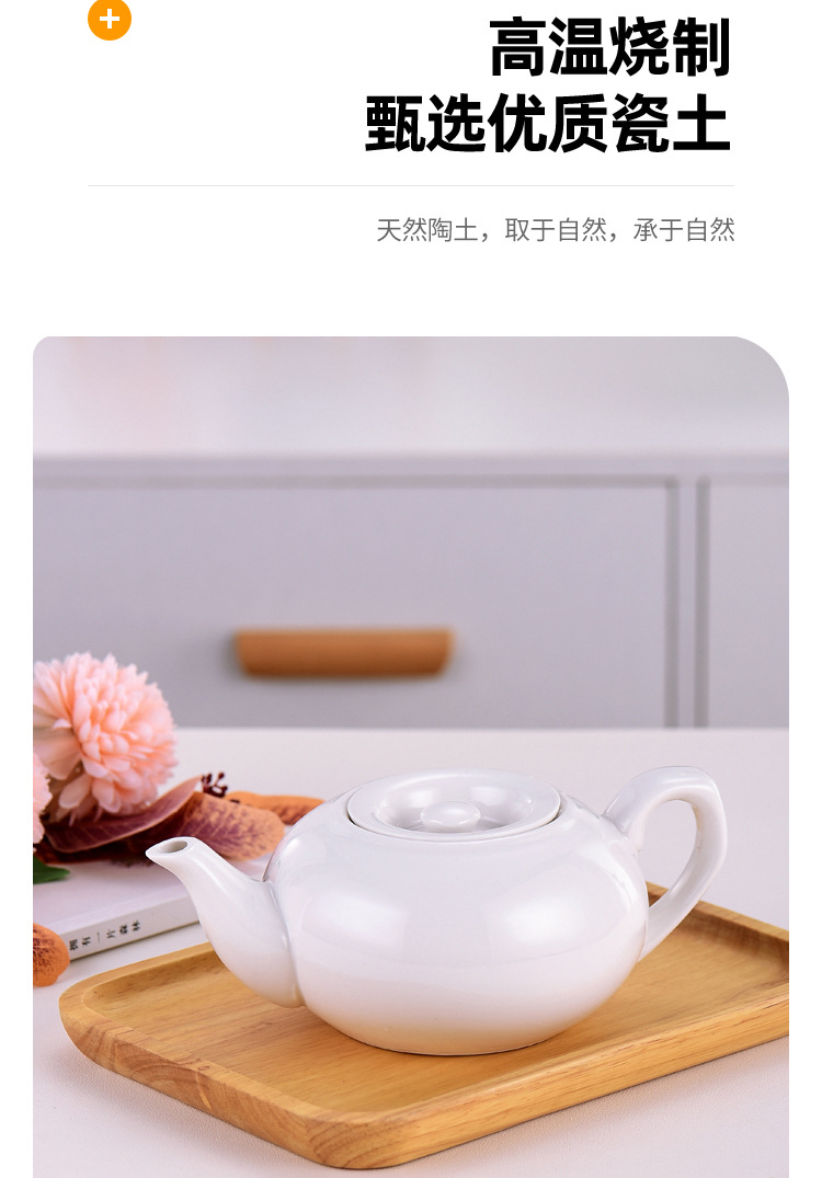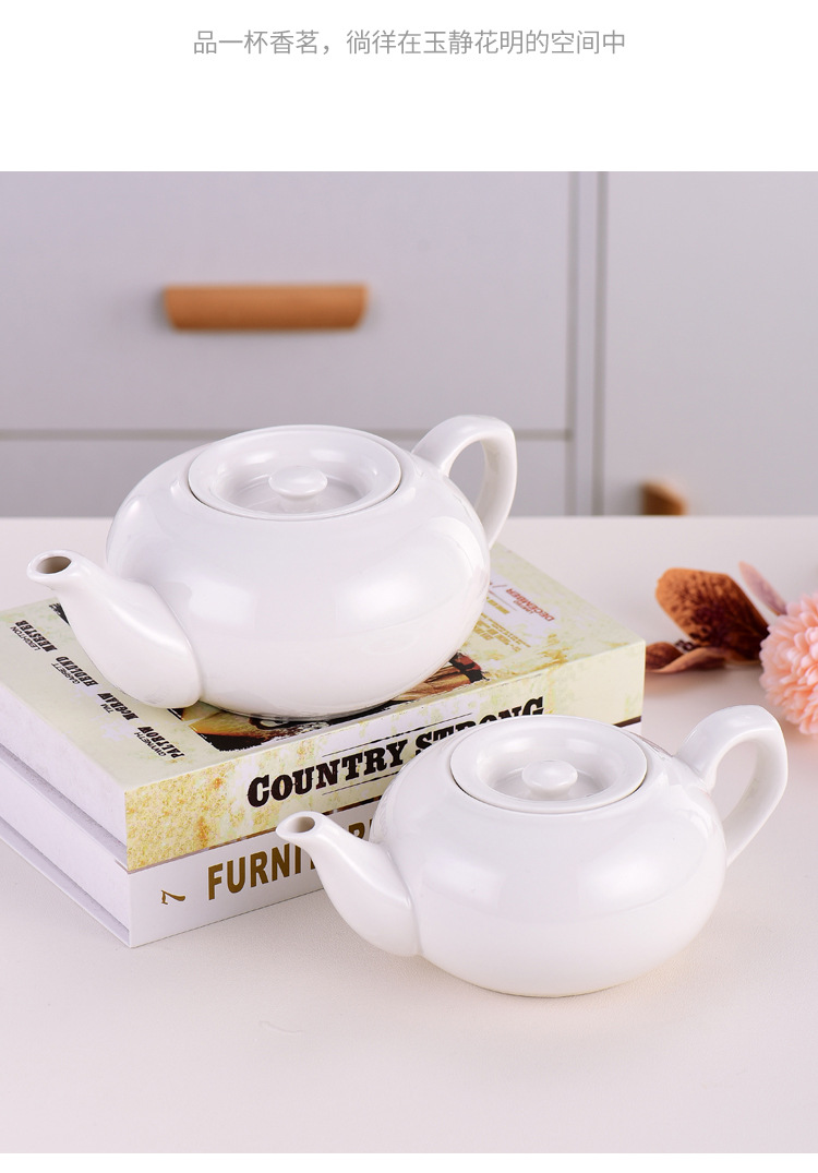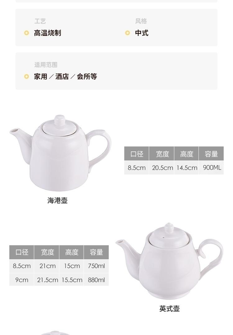 酒店大容量陶瓷茶壶饭店餐厅大小号茶具水壶家用白瓷带盖壶家用壶