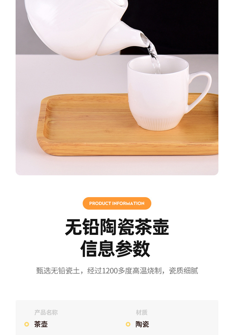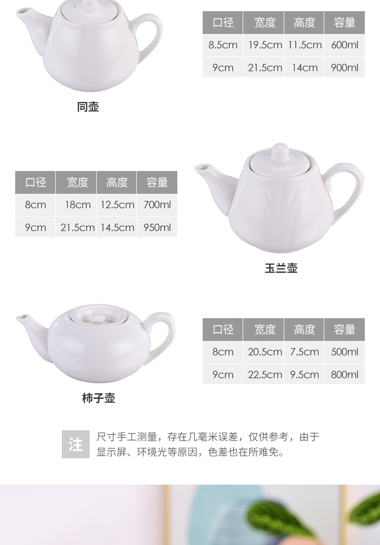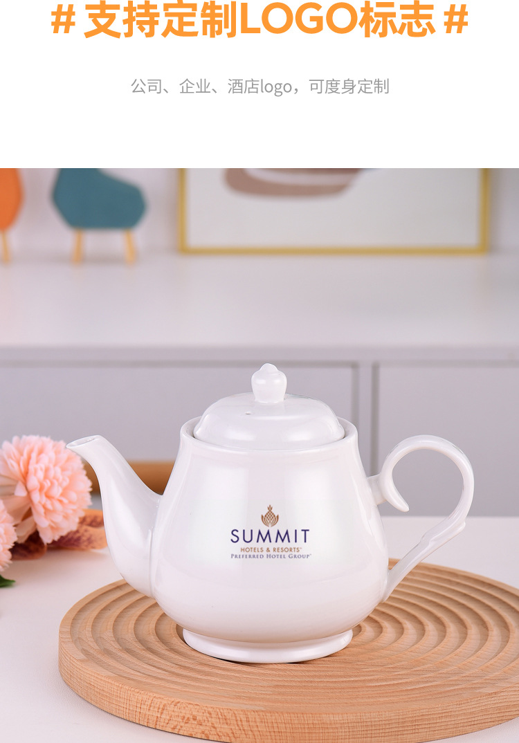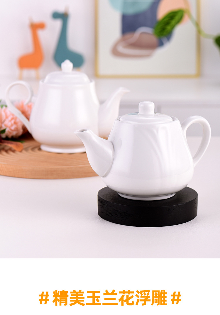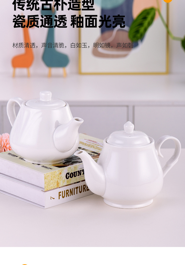 酒店大容量陶瓷茶壶饭店餐厅大小号茶具水壶家用白瓷带盖壶家用壶