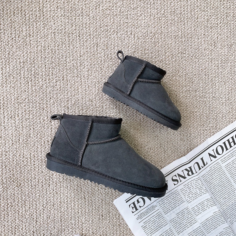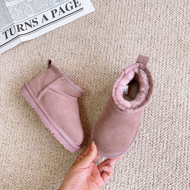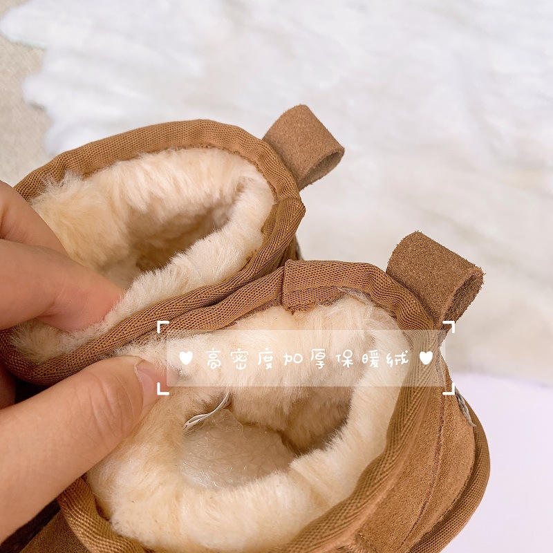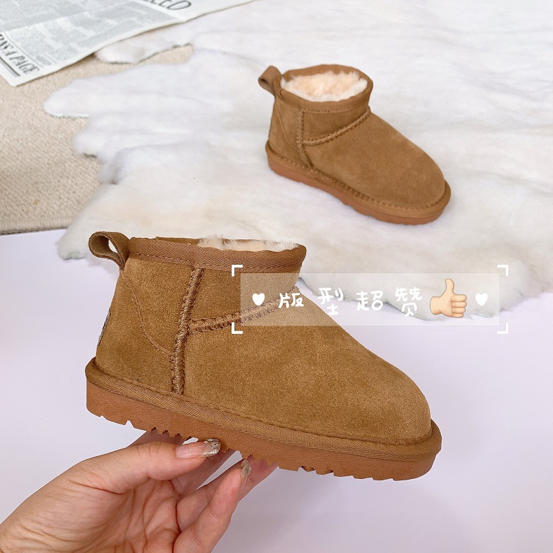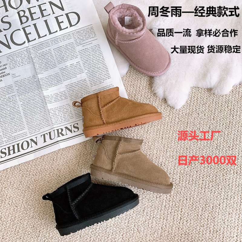 冬季真皮亲子款雪地靴女防滑短筒女棉鞋加厚保暖mini短靴童鞋批发