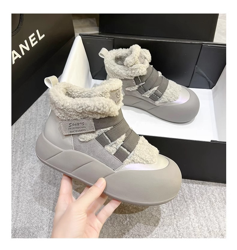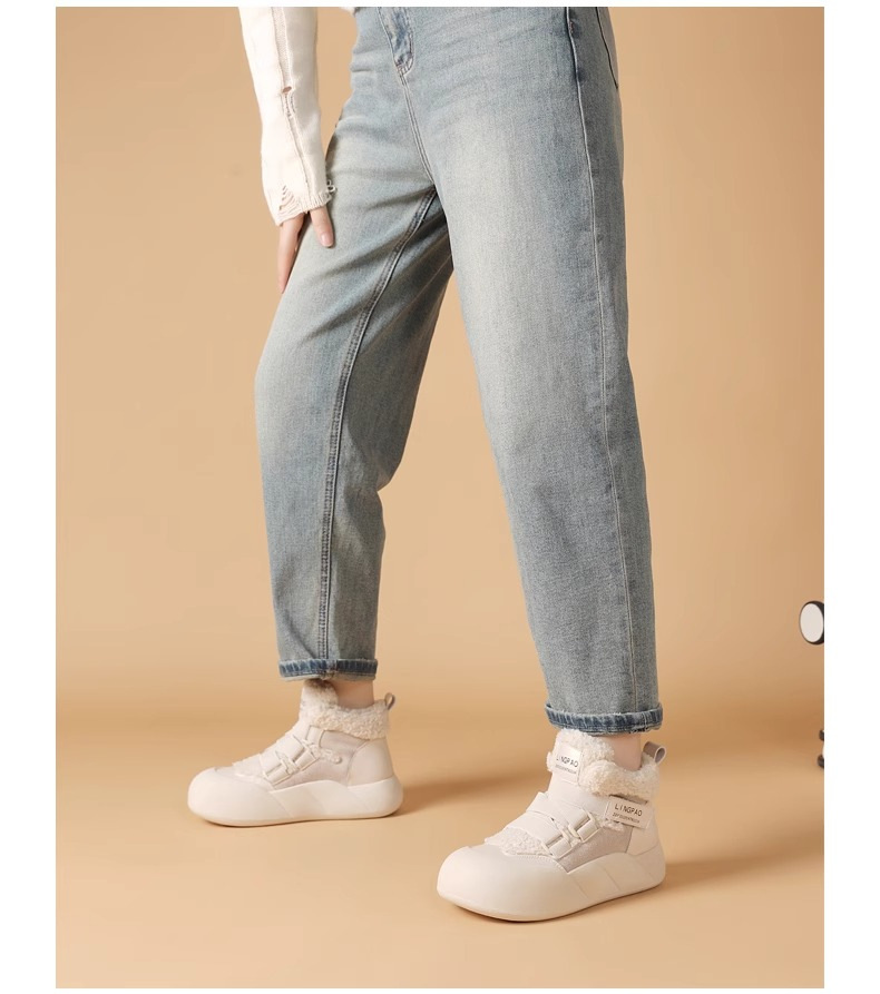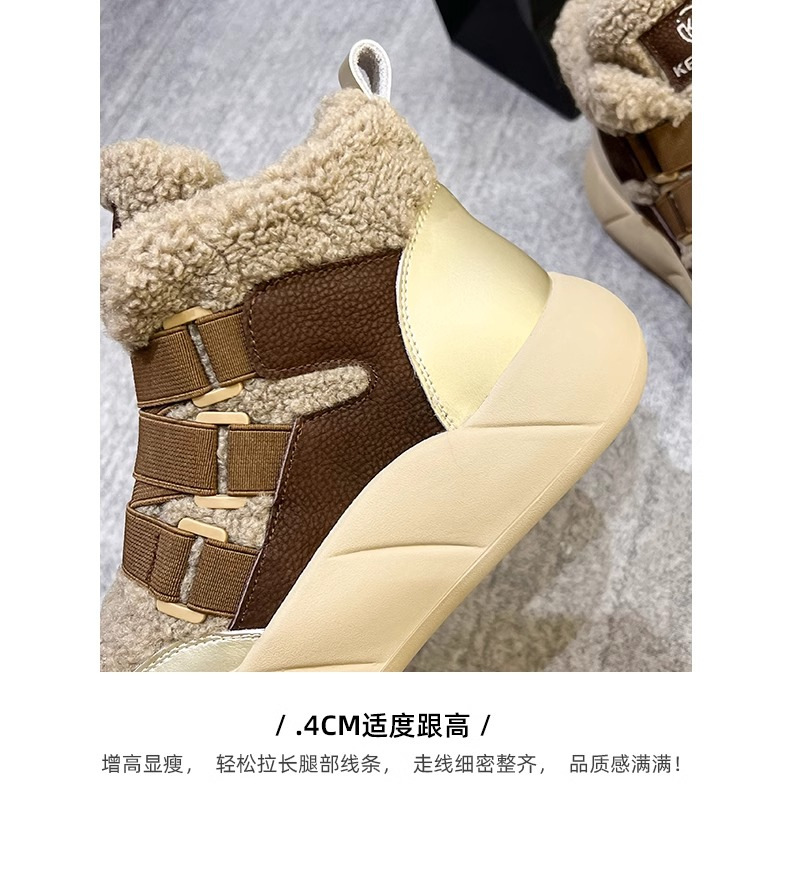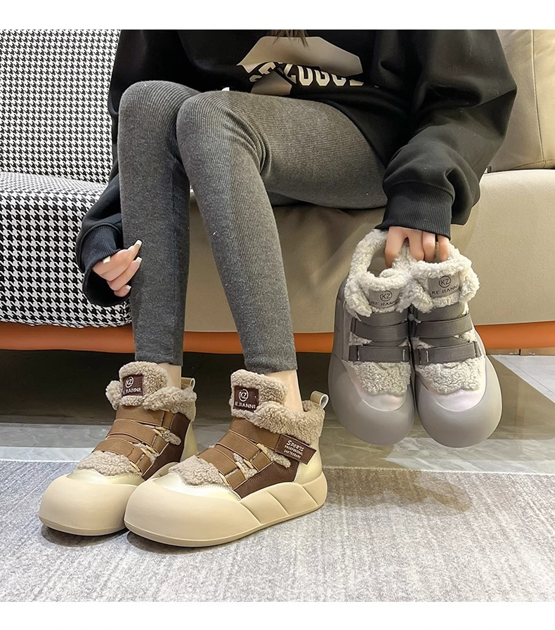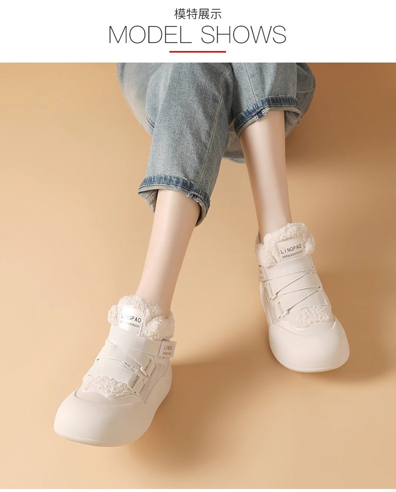 雪地靴女爆款加绒网红2024年冬季百搭织带松糕皮毛一体棉鞋女潮流