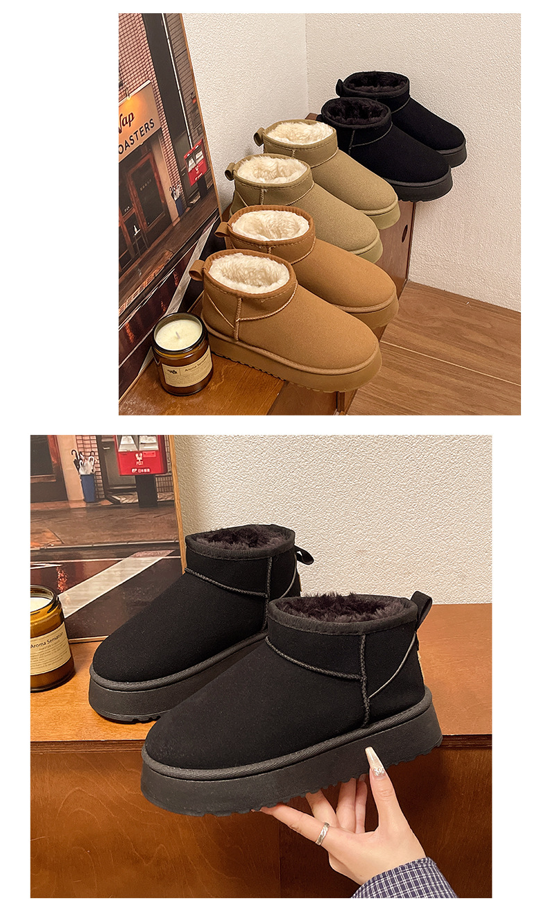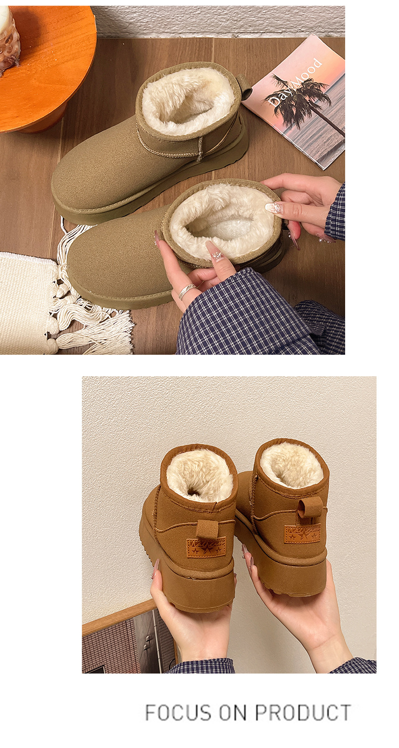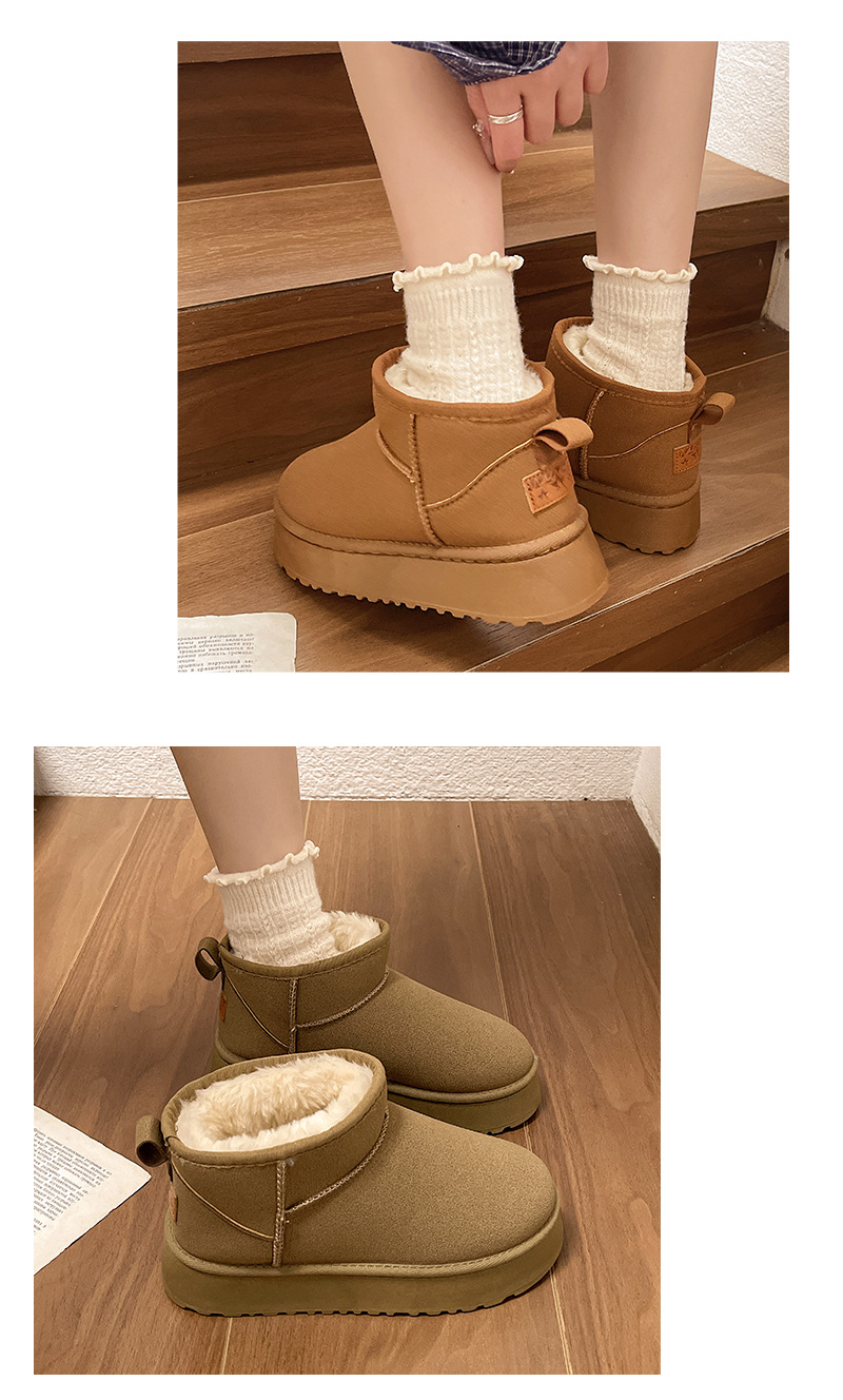 厚底松糕外穿短筒雪地靴女厂家直供百搭加绒加厚防滑加绒保暖棉鞋