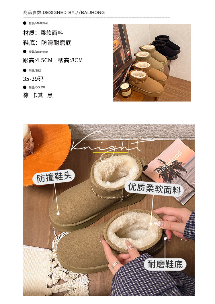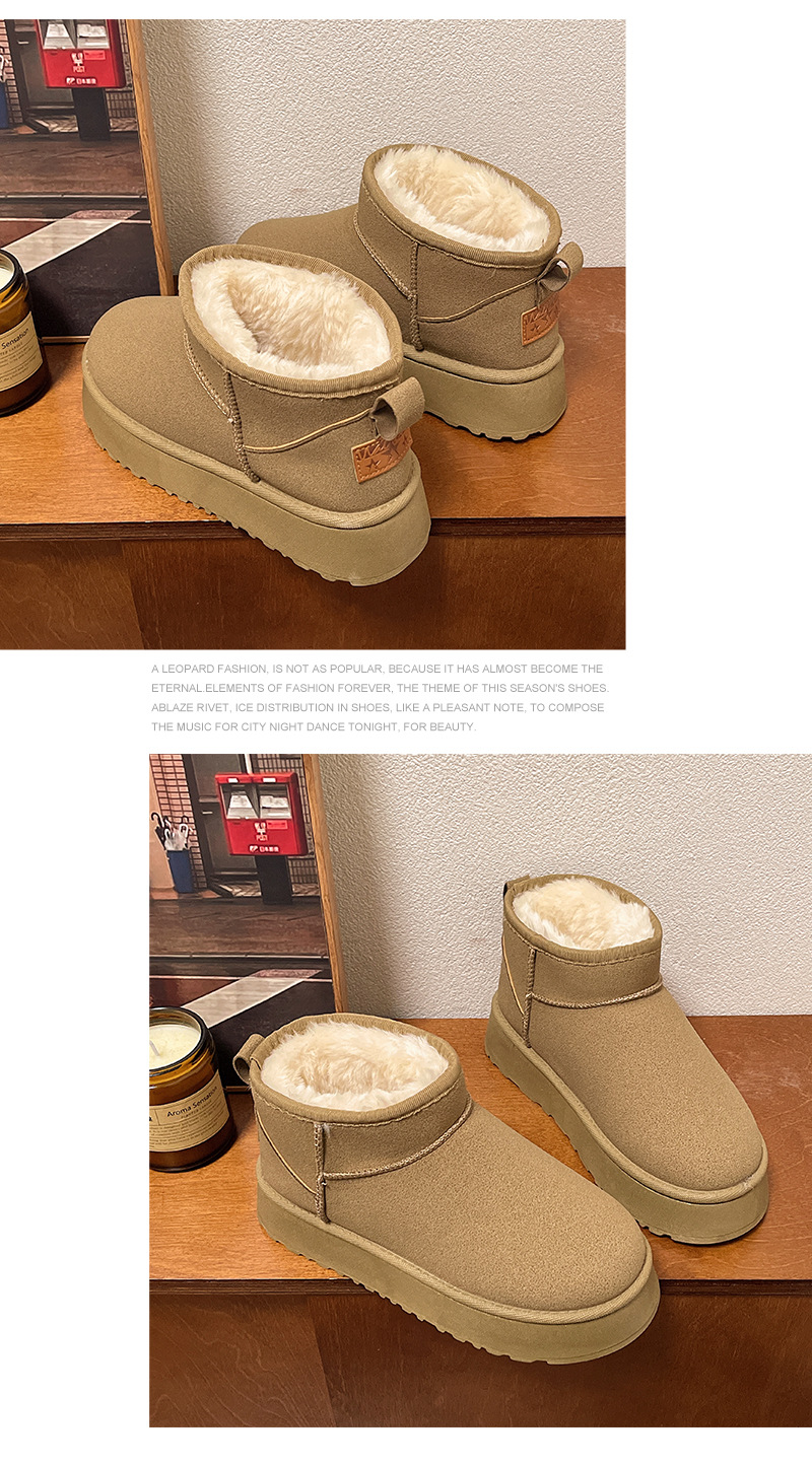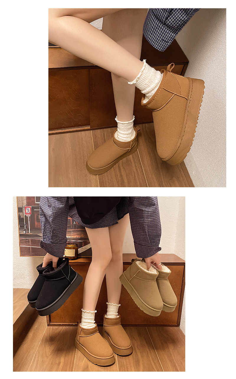 厚底松糕外穿短筒雪地靴女厂家直供百搭加绒加厚防滑加绒保暖棉鞋