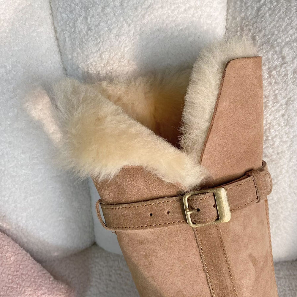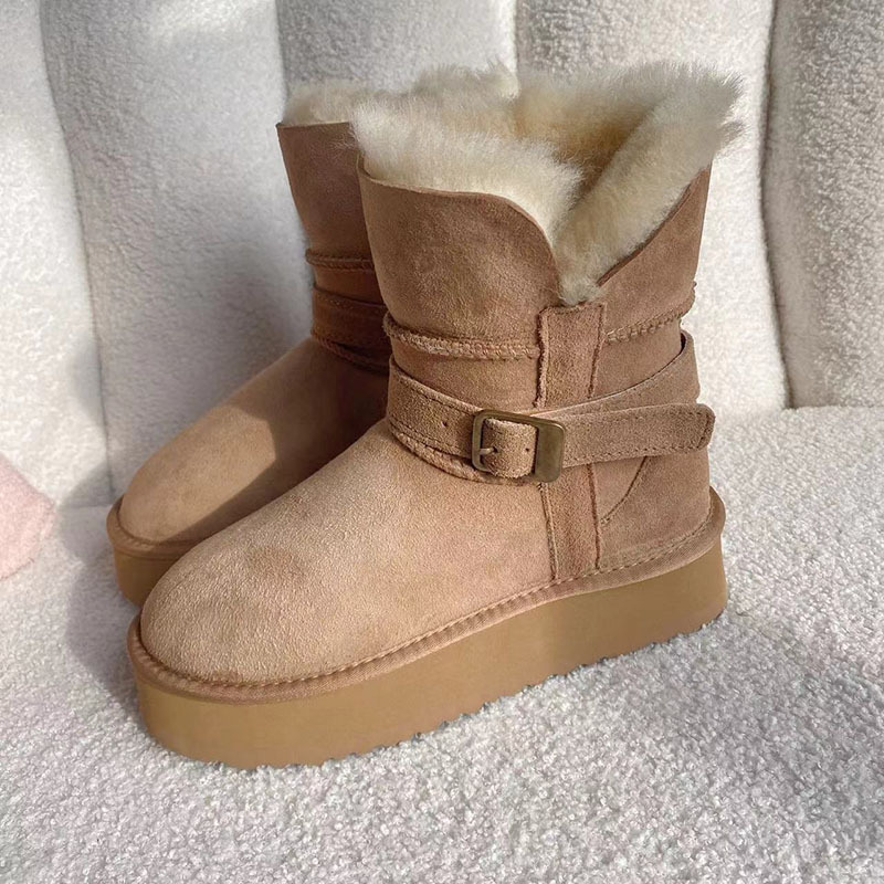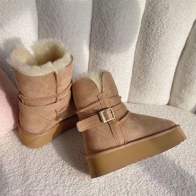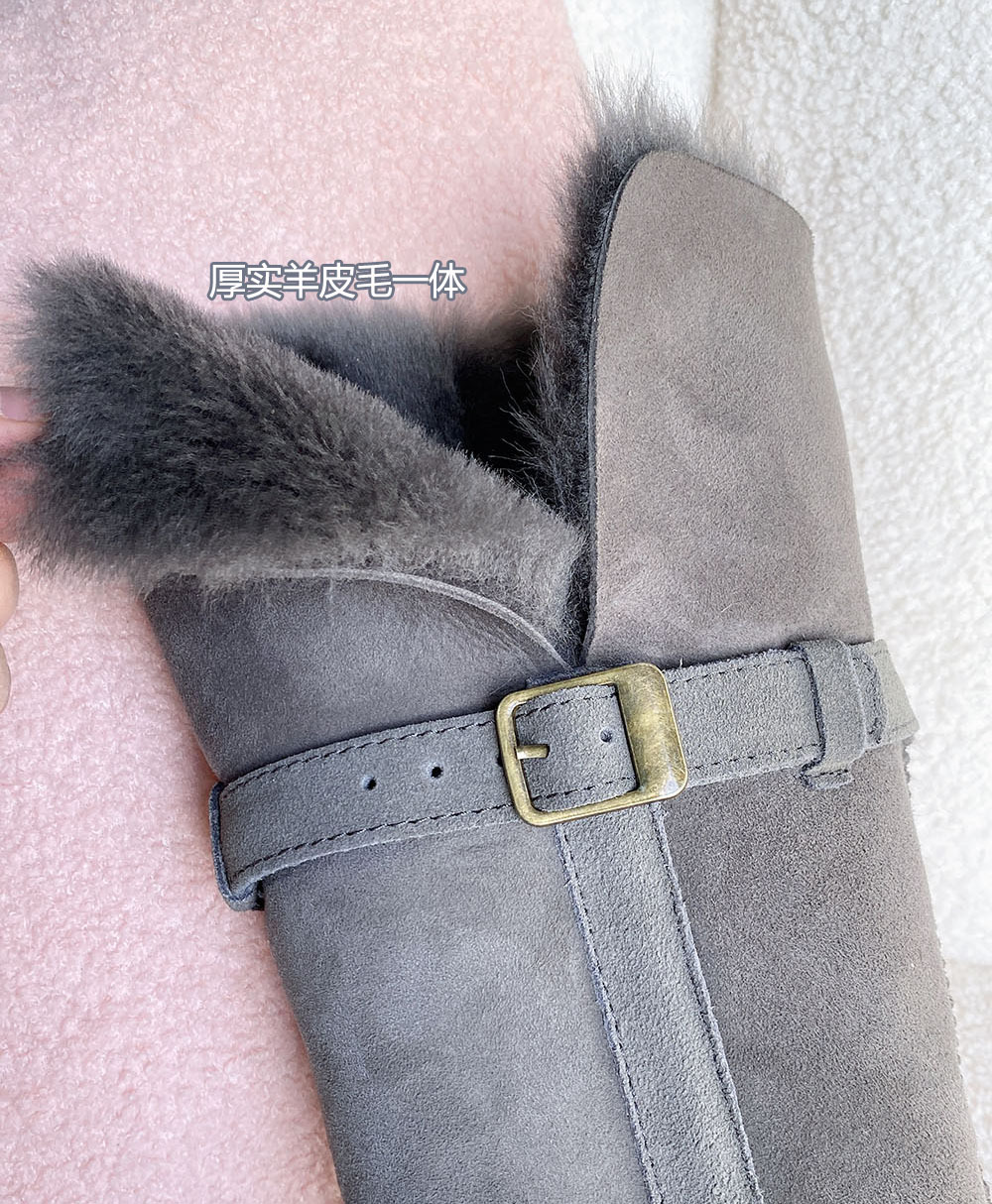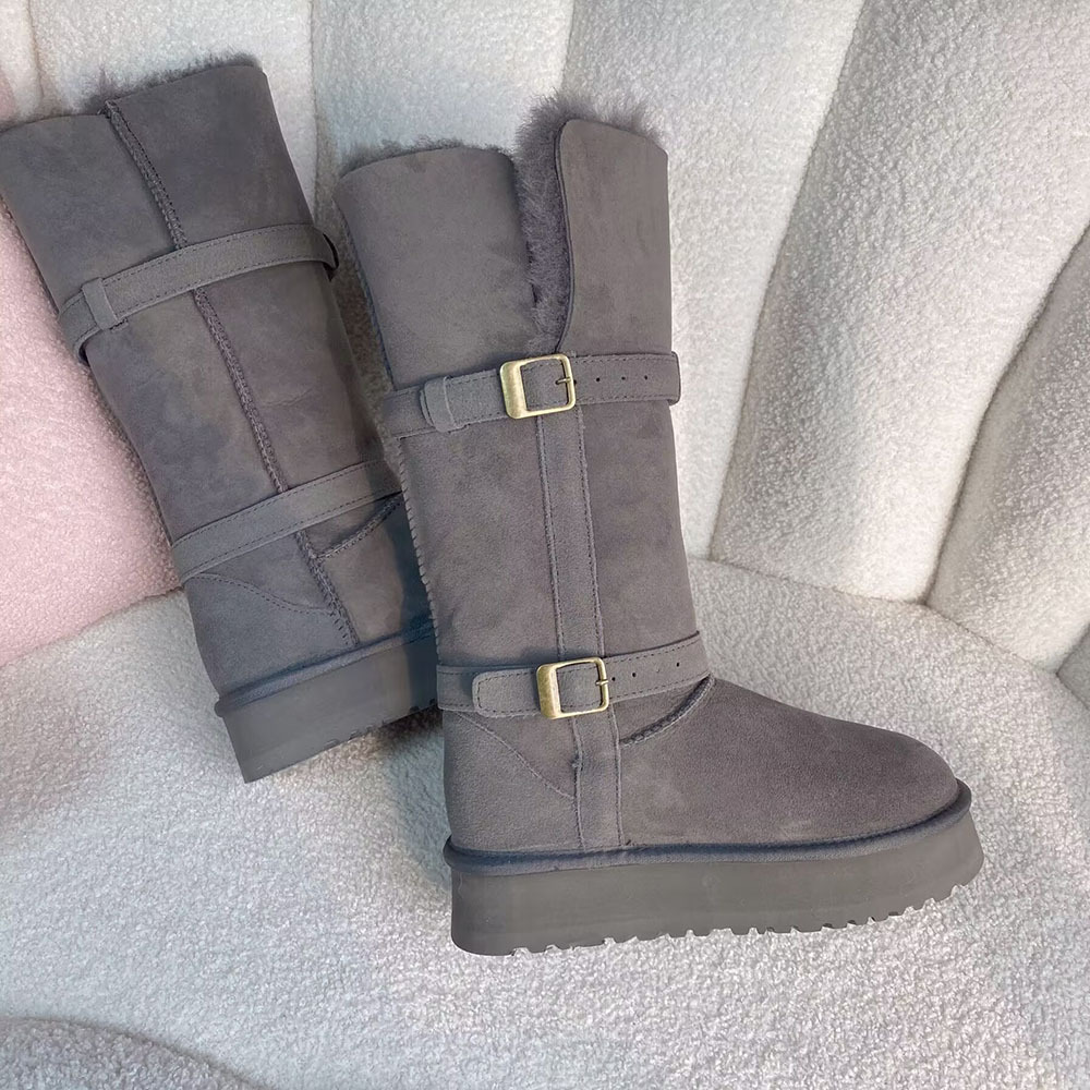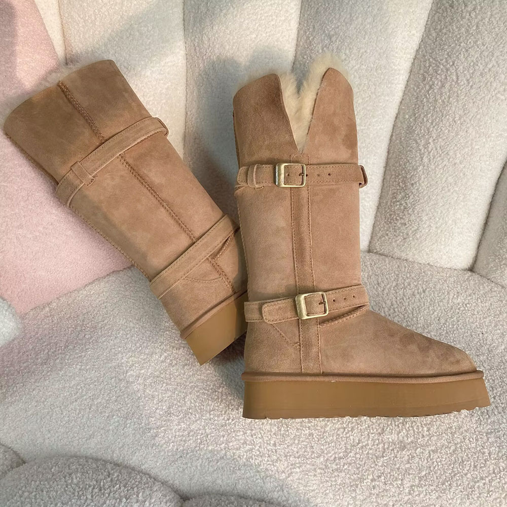 翻口高筒雪地靴女冬季新款皮扣骑士加绒加厚棉鞋羊皮毛一体长筒靴