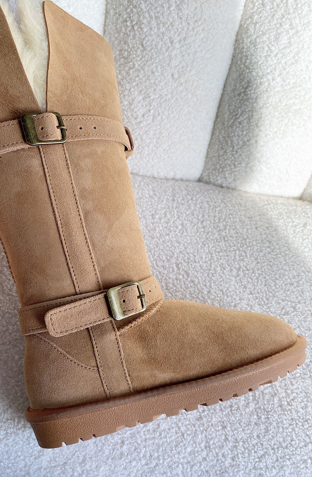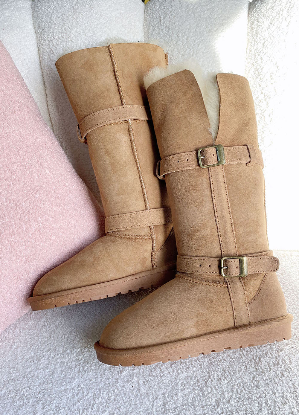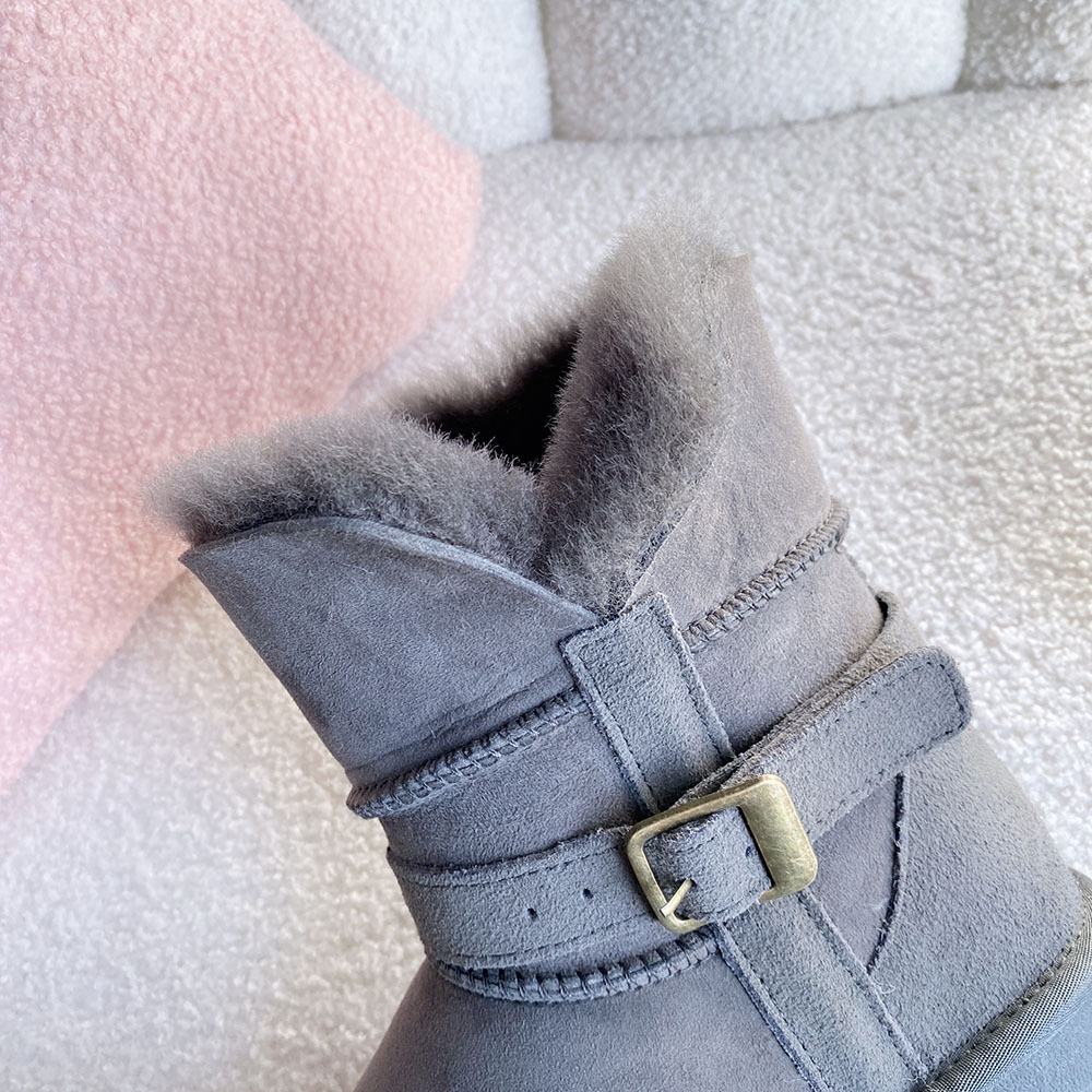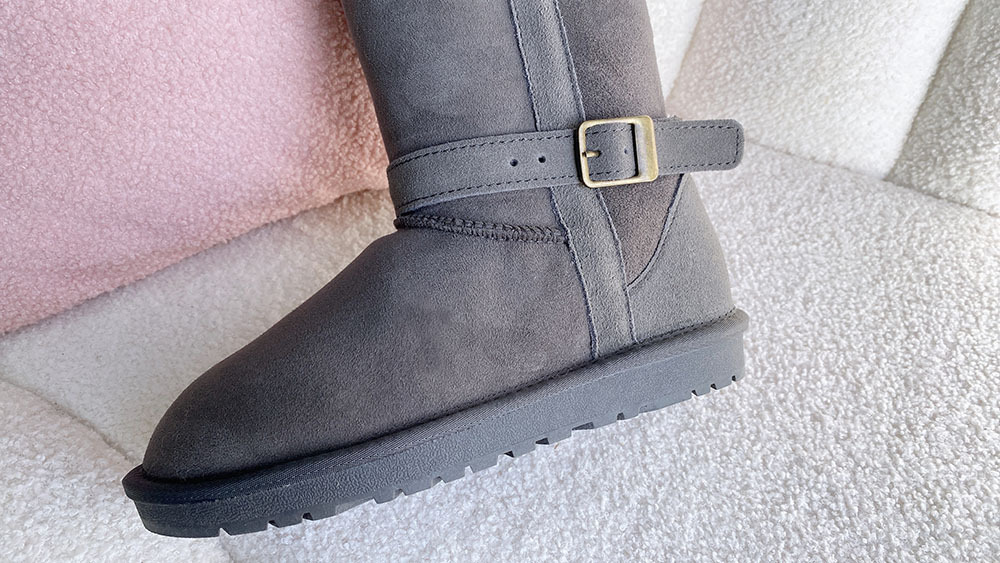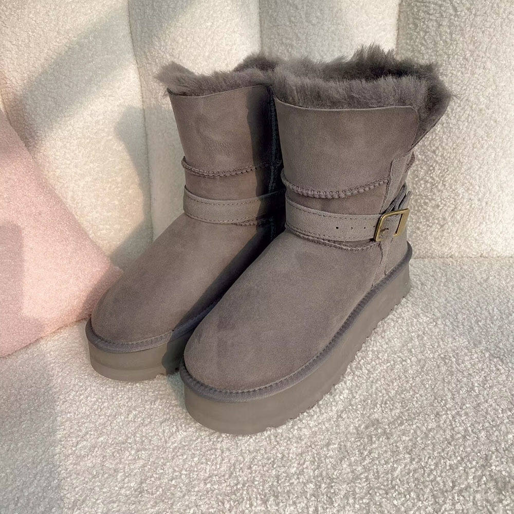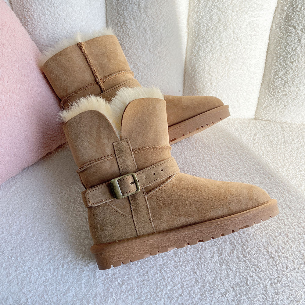 翻口高筒雪地靴女冬季新款皮扣骑士加绒加厚棉鞋羊皮毛一体长筒靴