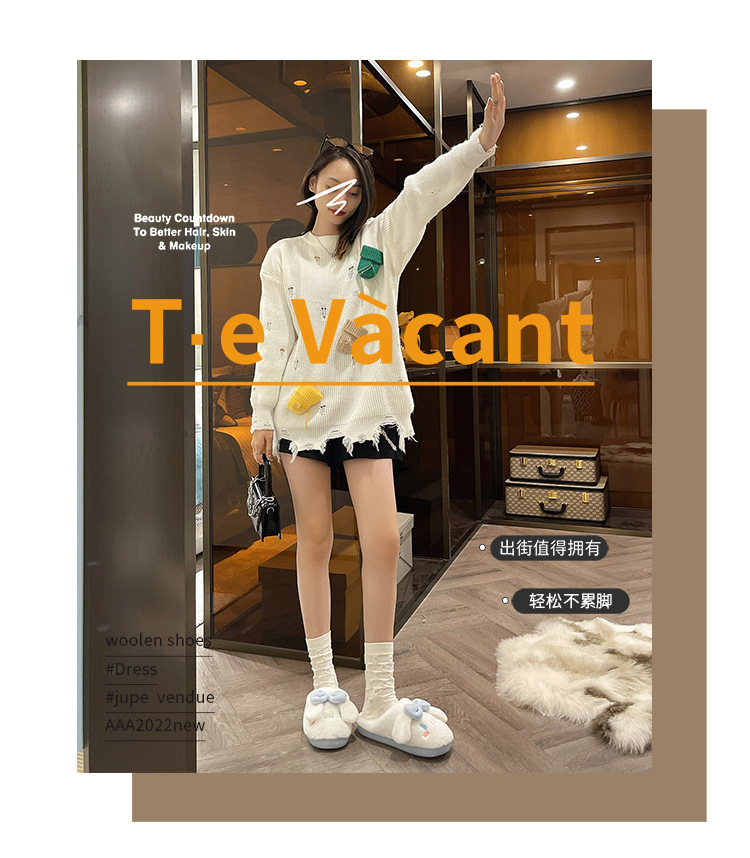 玉桂狗棉拖鞋女冬季外穿ins潮可爱保暖毛毛拖鞋宿舍居家防滑棉拖