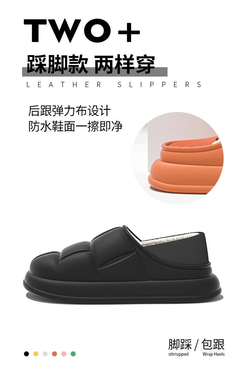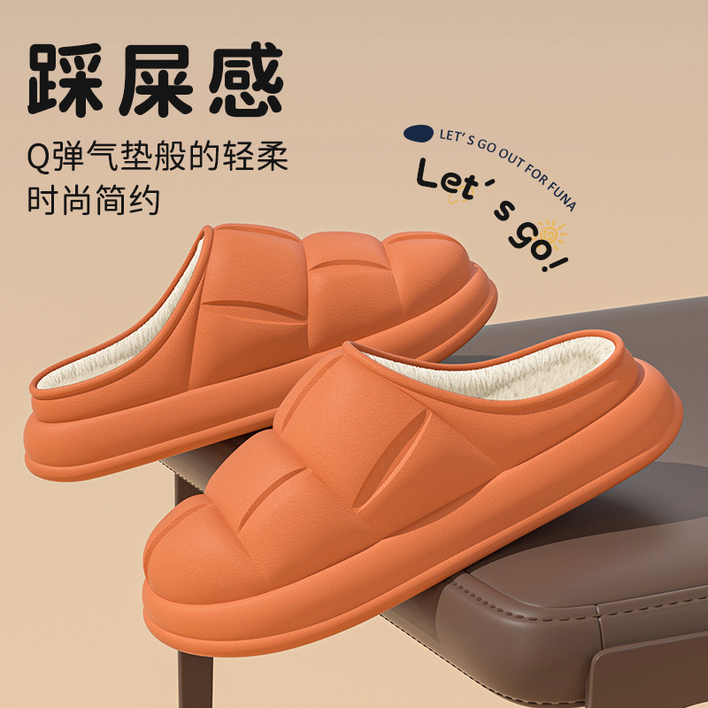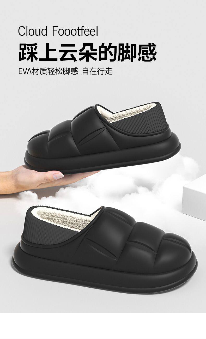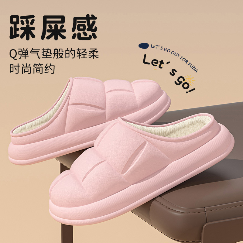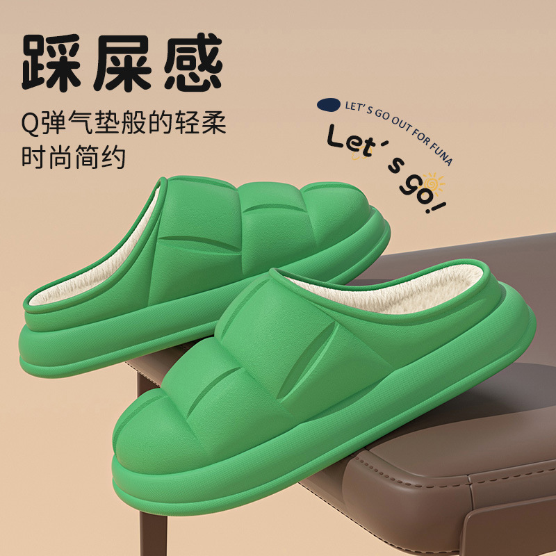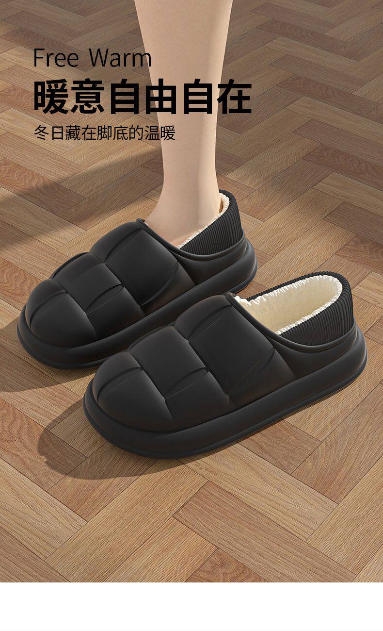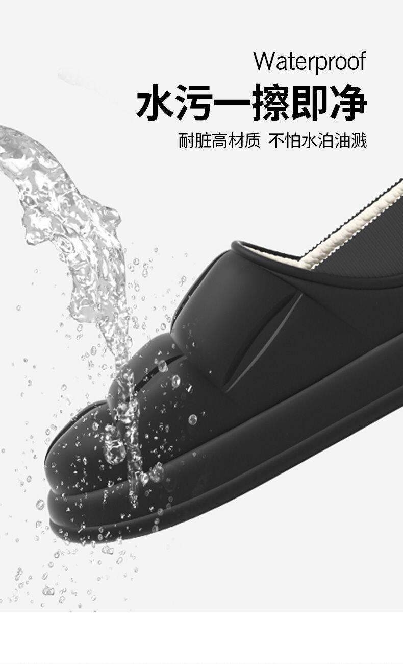 秋冬季防水花踩屎感秋冬季2024厚底居家室内情侣加绒包跟棉拖鞋