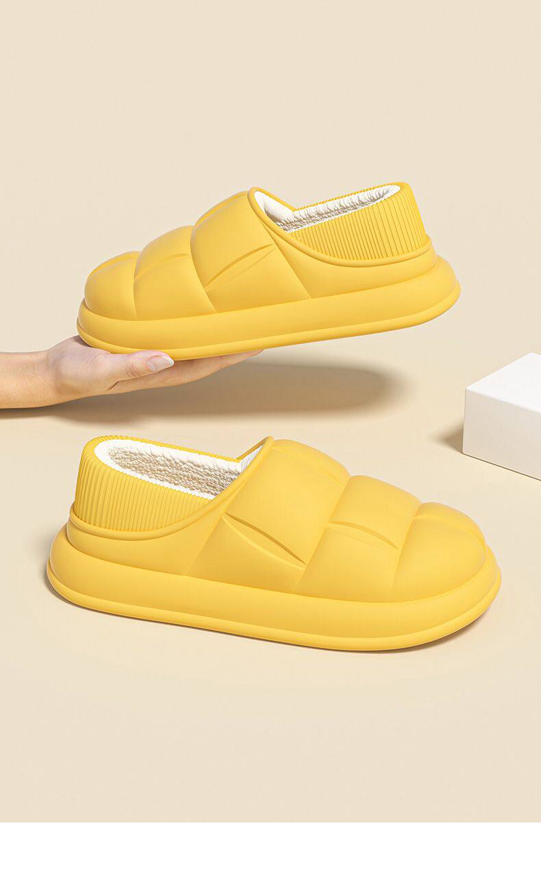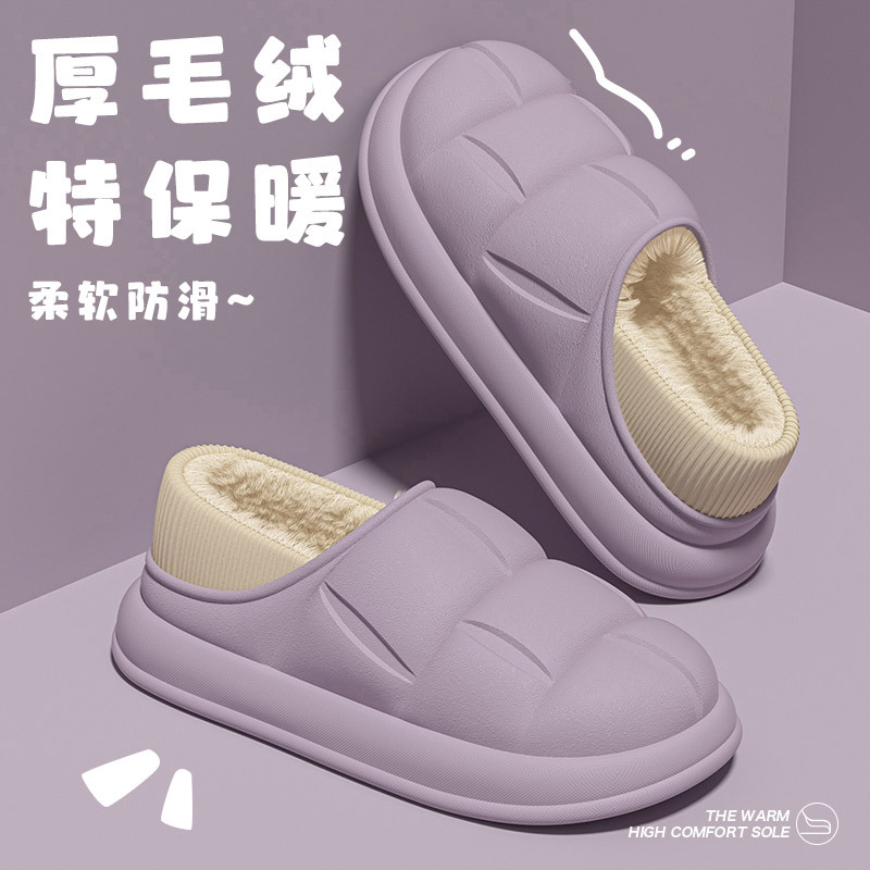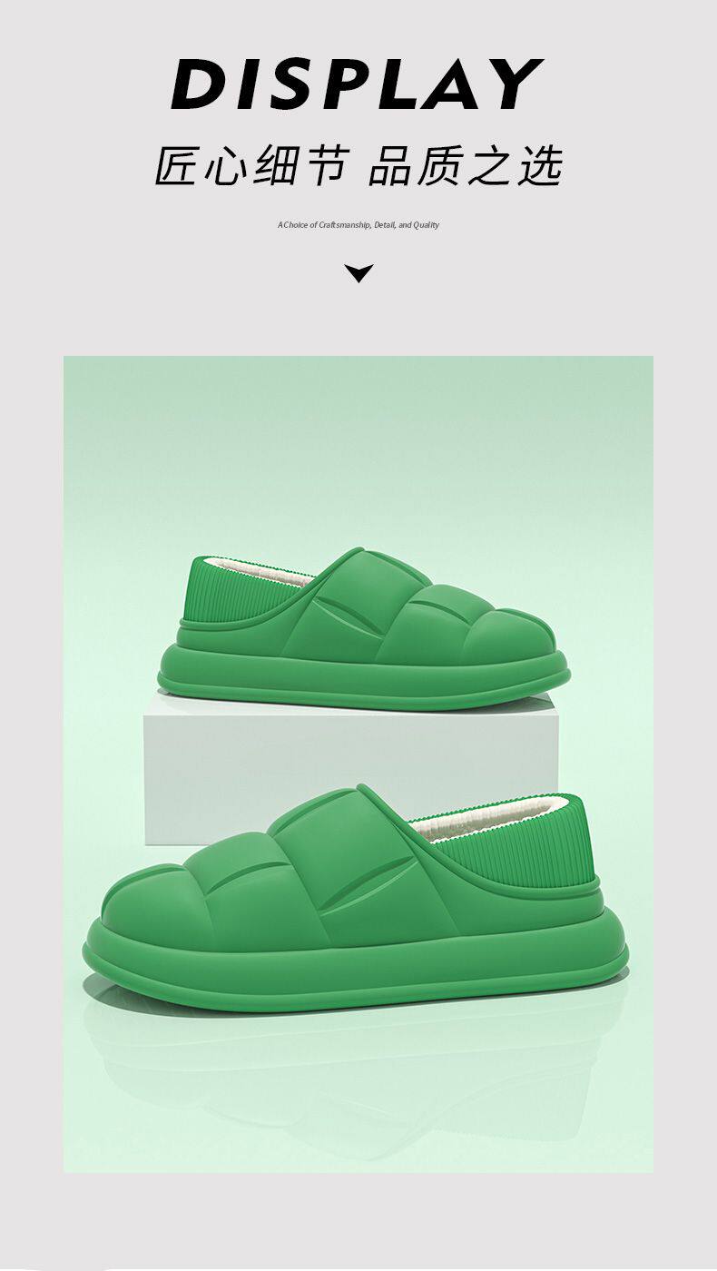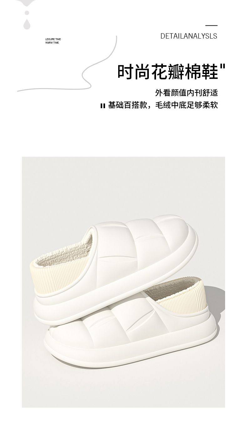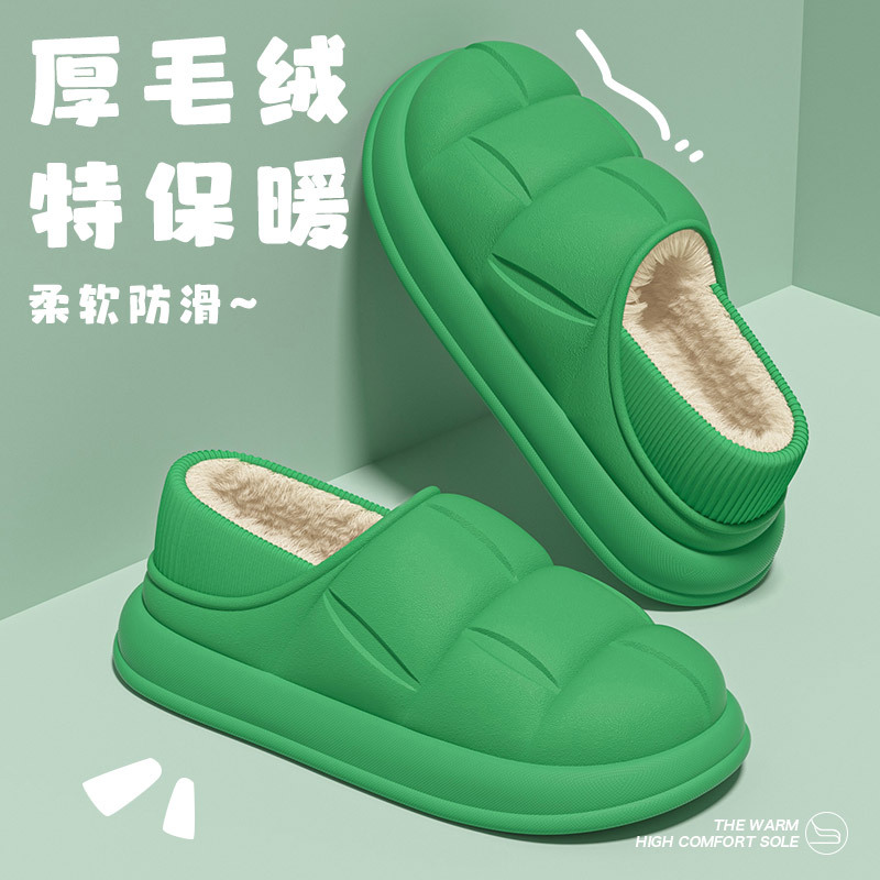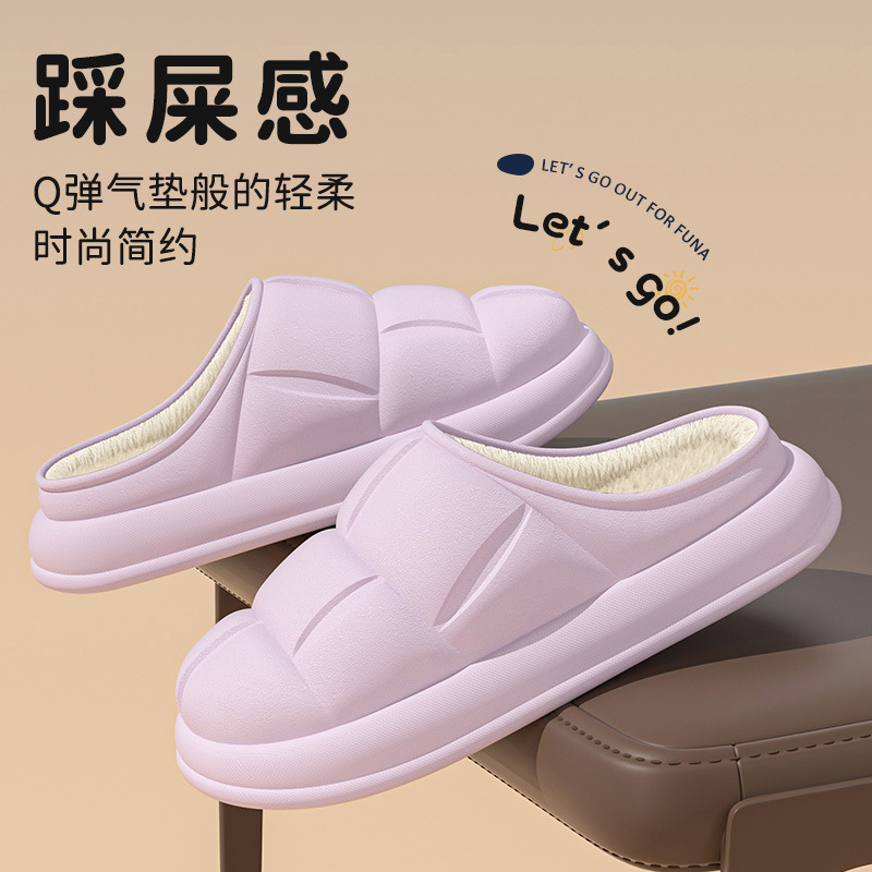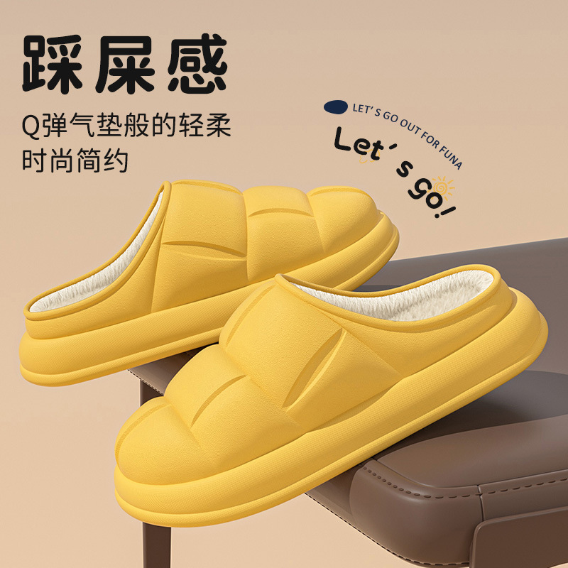 秋冬季防水花踩屎感秋冬季2024厚底居家室内情侣加绒包跟棉拖鞋