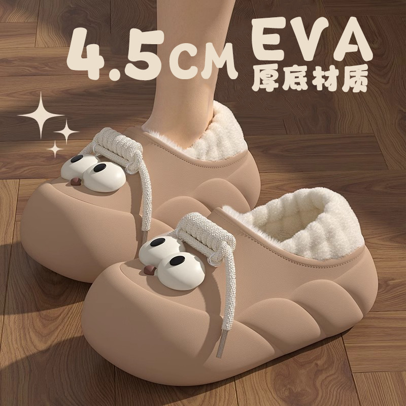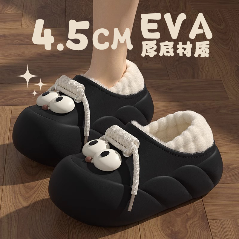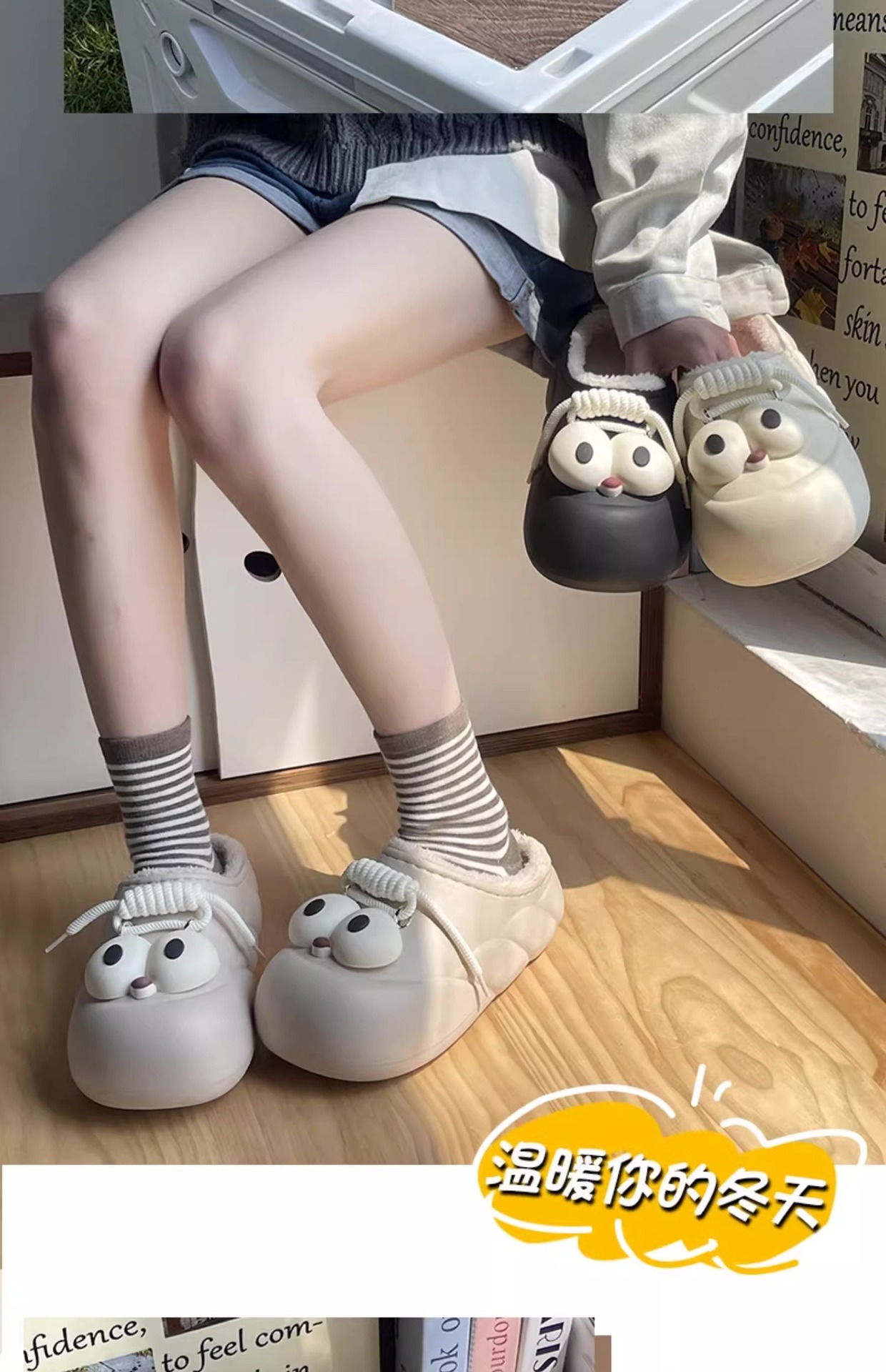 大眼睛棉拖鞋厚底可爱加绒保暖棉拖家居室内冬天拖鞋棉鞋可外穿