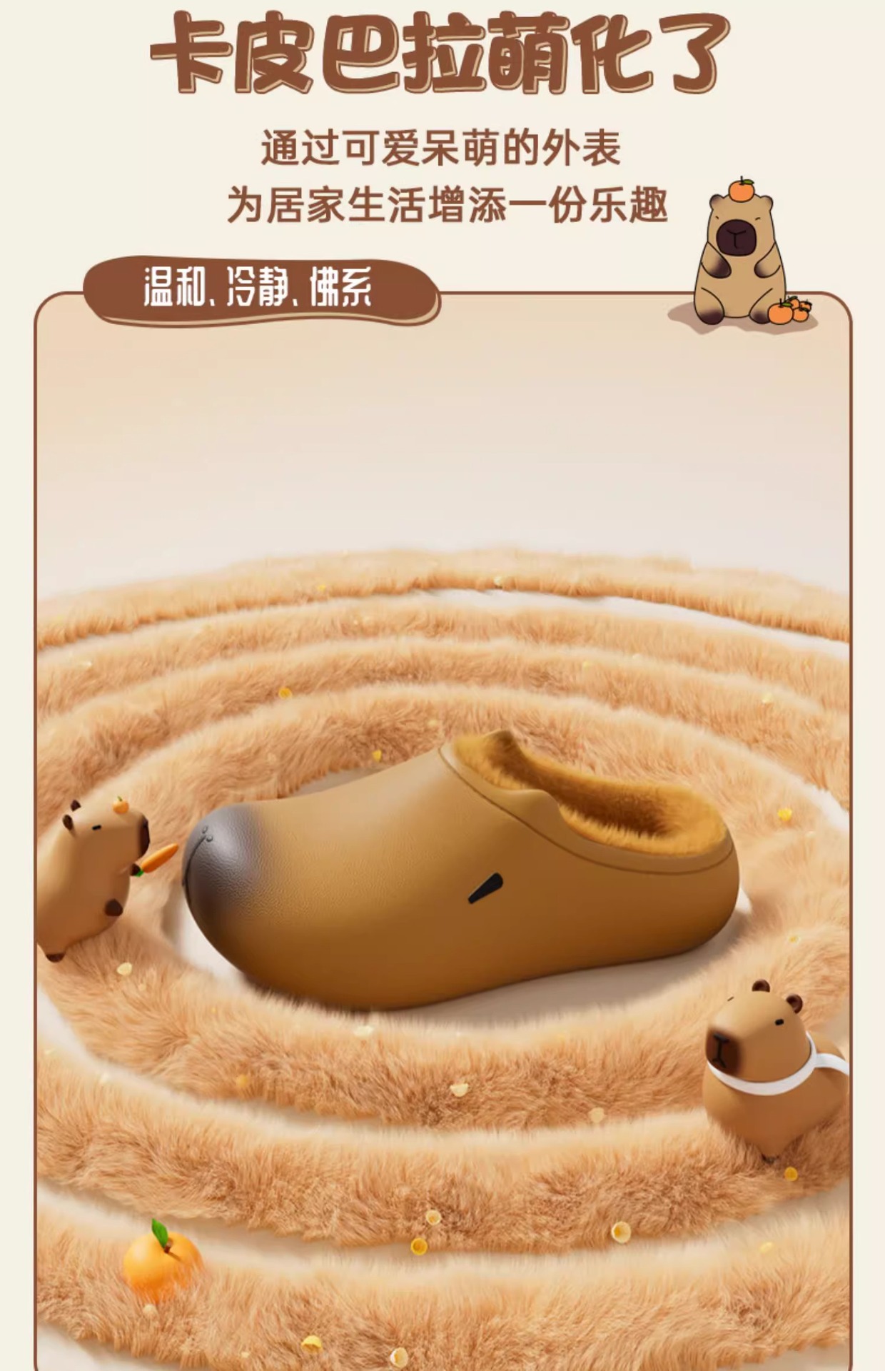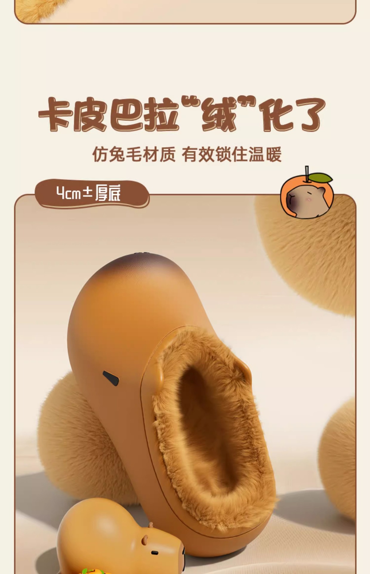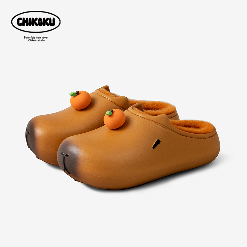 chikoku卡皮巴拉勃肯鞋女冬季家居厚底情侣保暖防风毛毛拖棉拖男