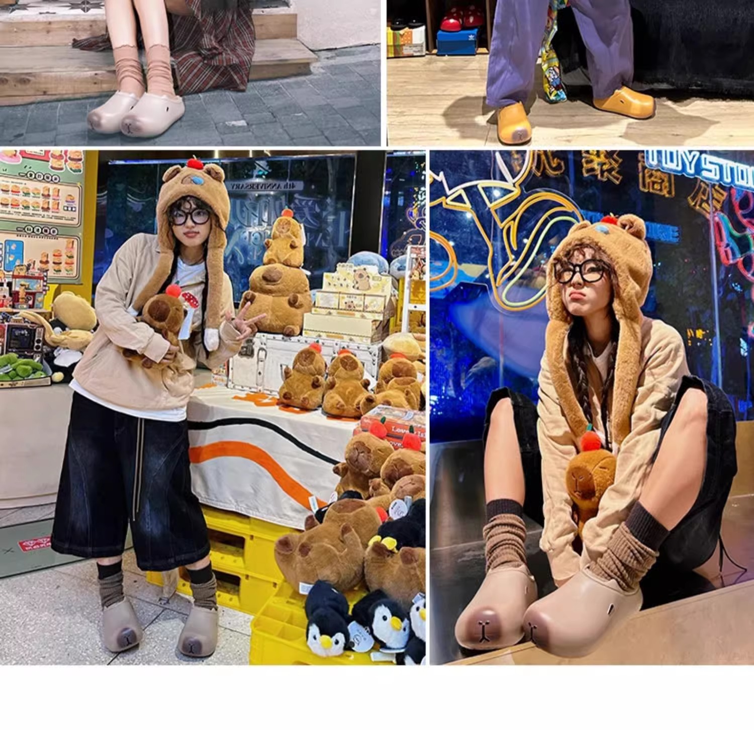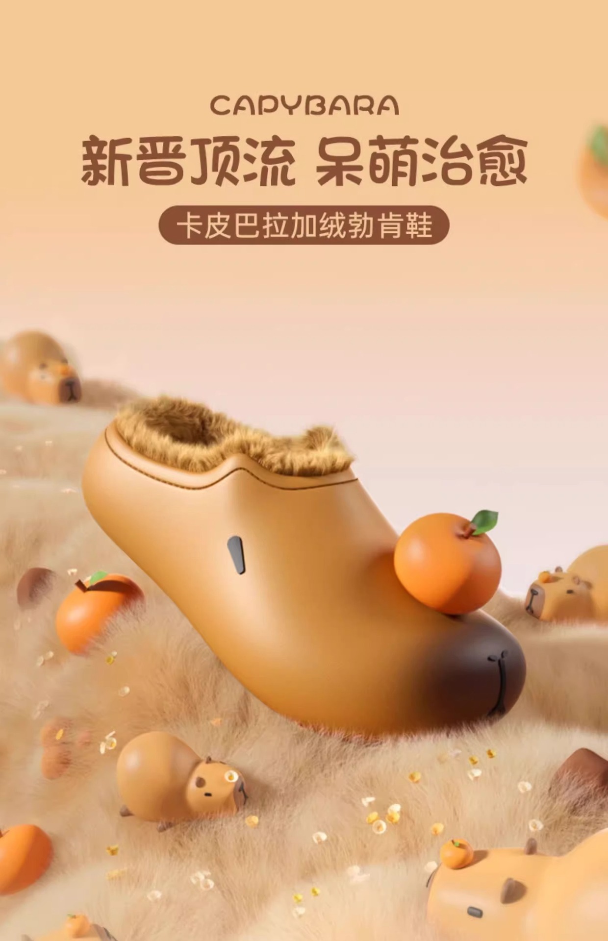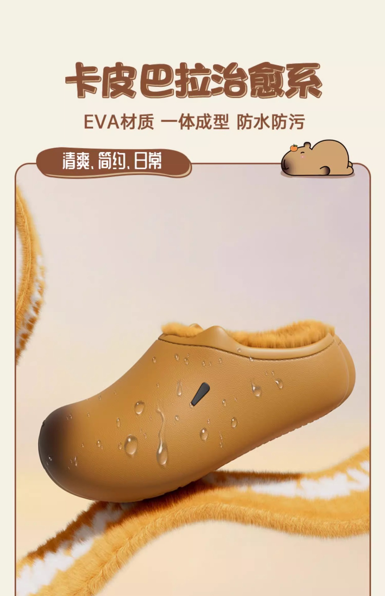 chikoku卡皮巴拉勃肯鞋女冬季家居厚底情侣保暖防风毛毛拖棉拖男