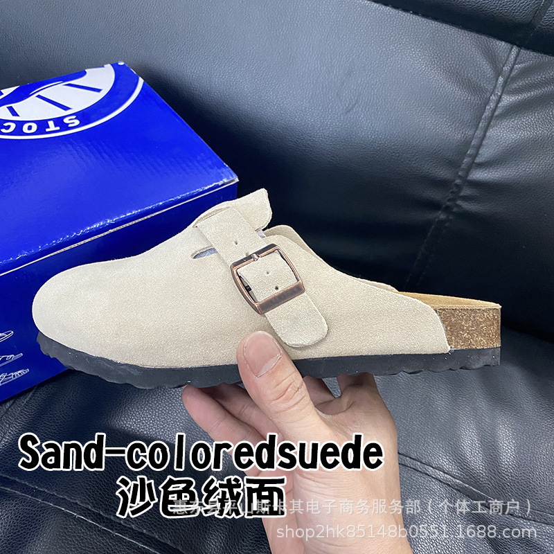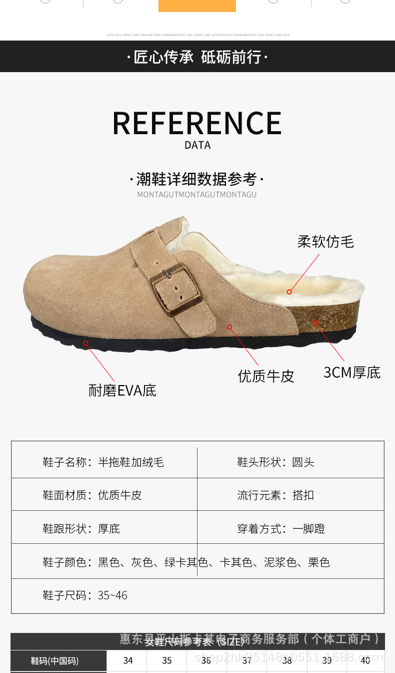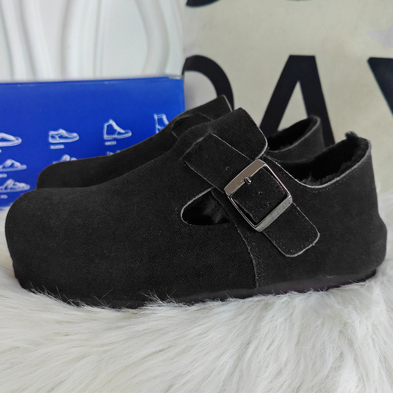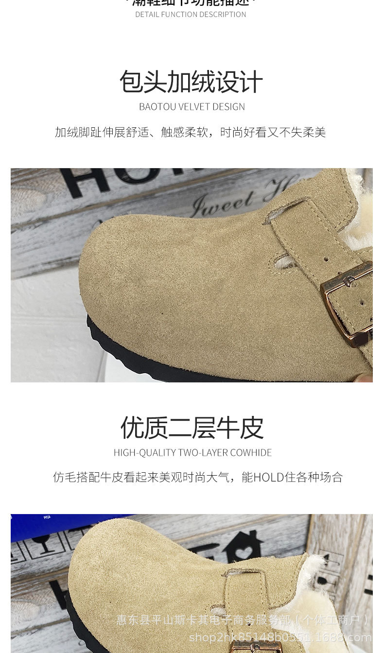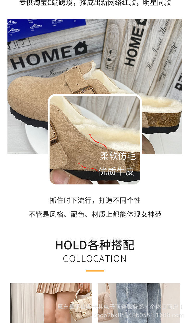 勃肯鞋纯原桑坡半拖真皮男女2024冬厚底加绒包头半拖雪地鞋棉拖鞋