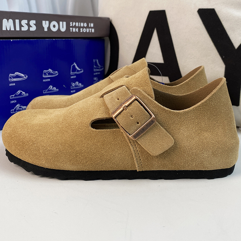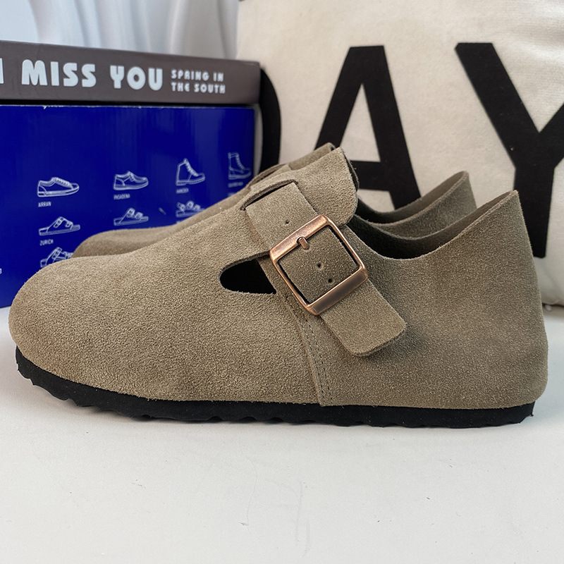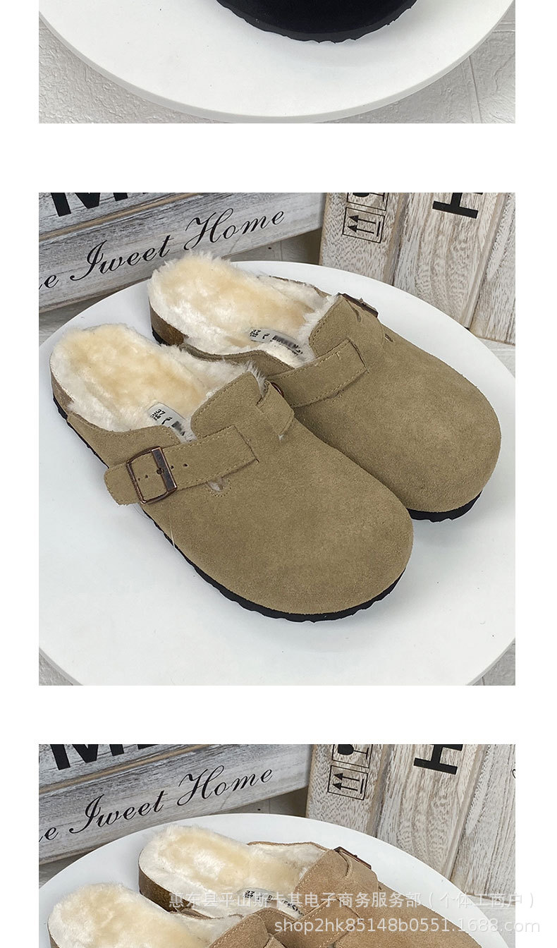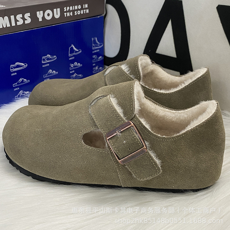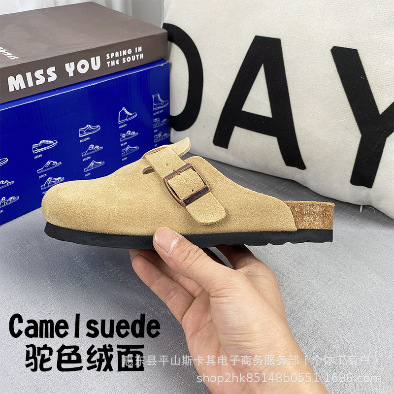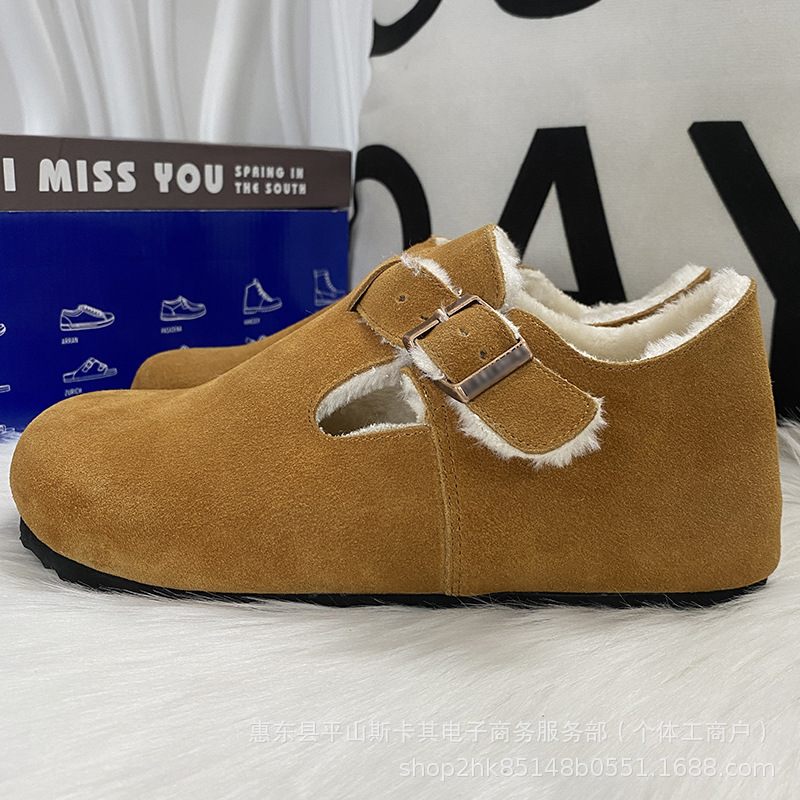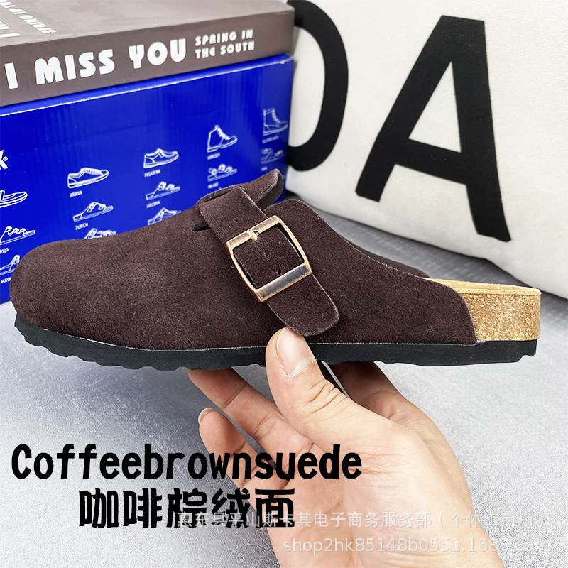 勃肯鞋纯原桑坡半拖真皮男女2024冬厚底加绒包头半拖雪地鞋棉拖鞋