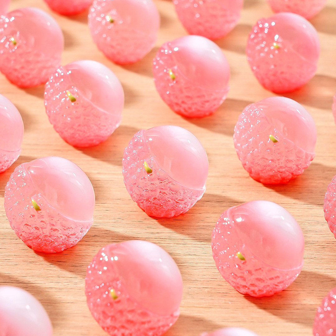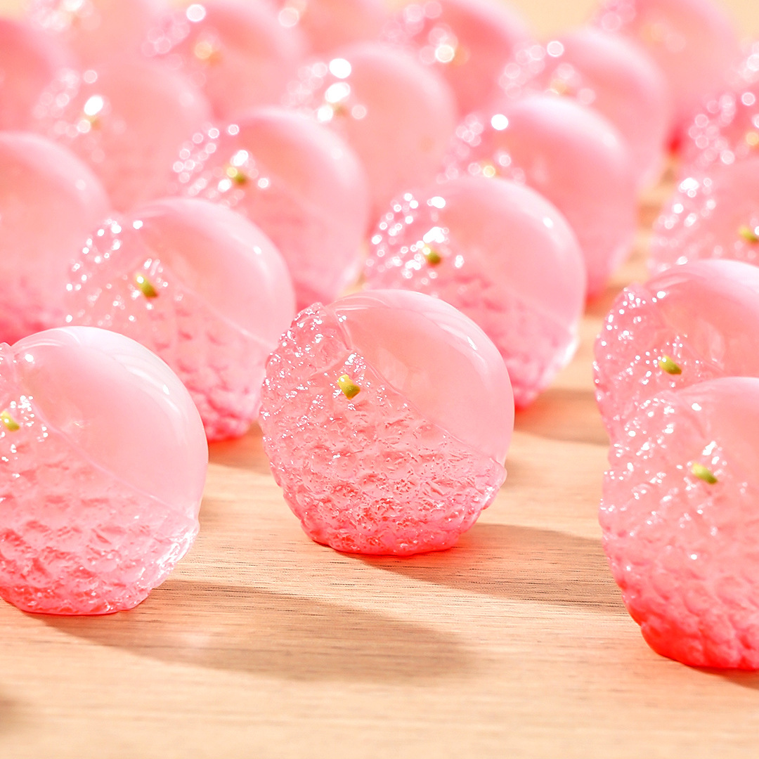 仿真水果微景观冰透夜光粉色荔枝 DIY装饰品挂配件桌面车载小摆件