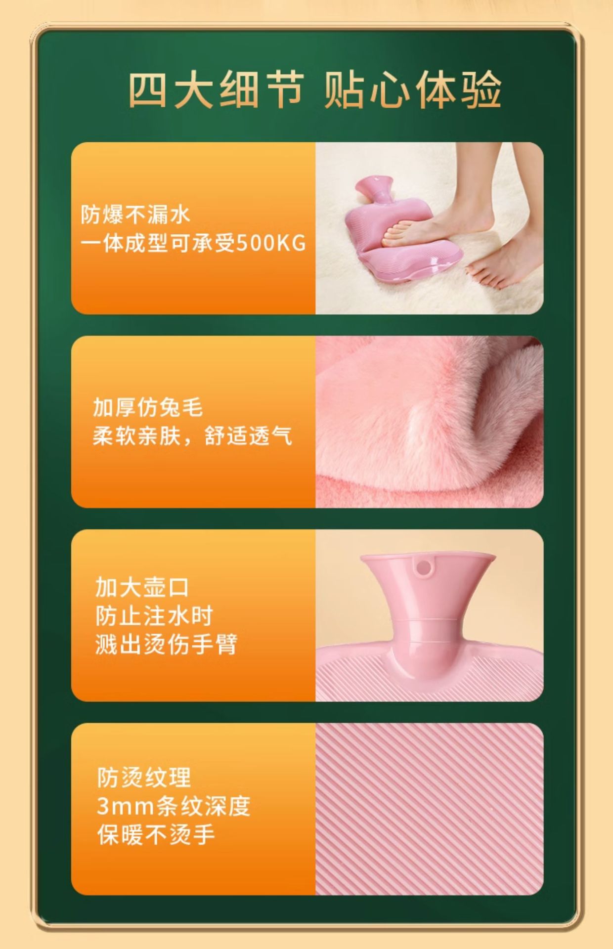 厂家兔绒热水袋注水大小号冲水暖水袋女暖肚子灌水暖手宝暖宝亚马
