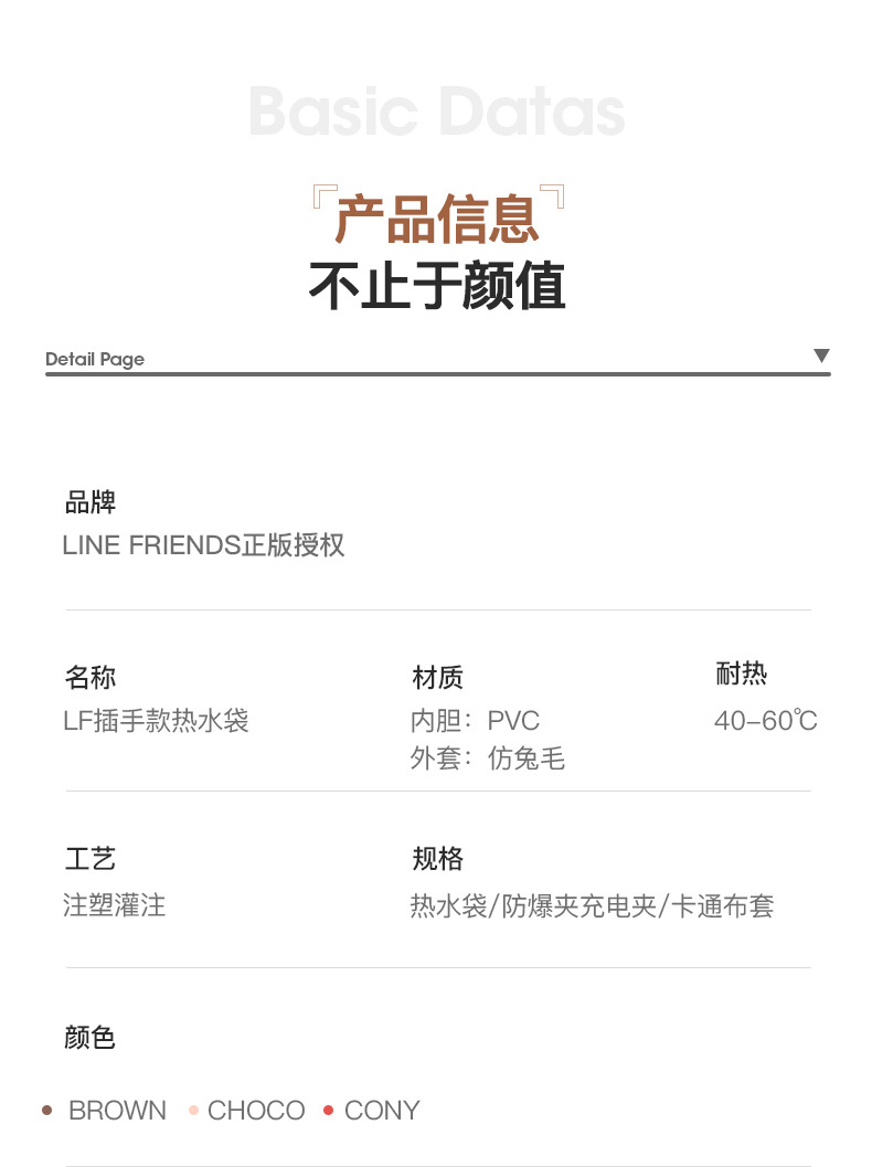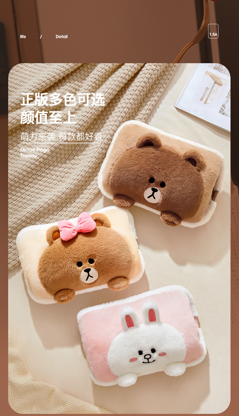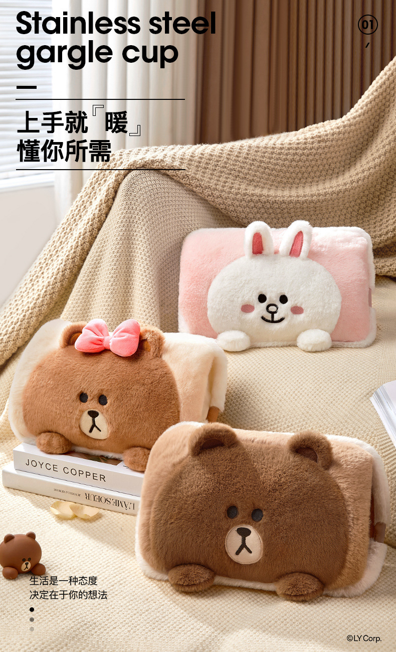 LINE FRIENDS防爆毛绒充电热水袋暖水袋暖宝宝可爱女生被窝暖手宝
