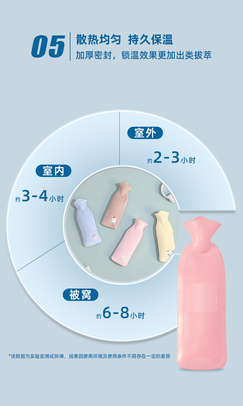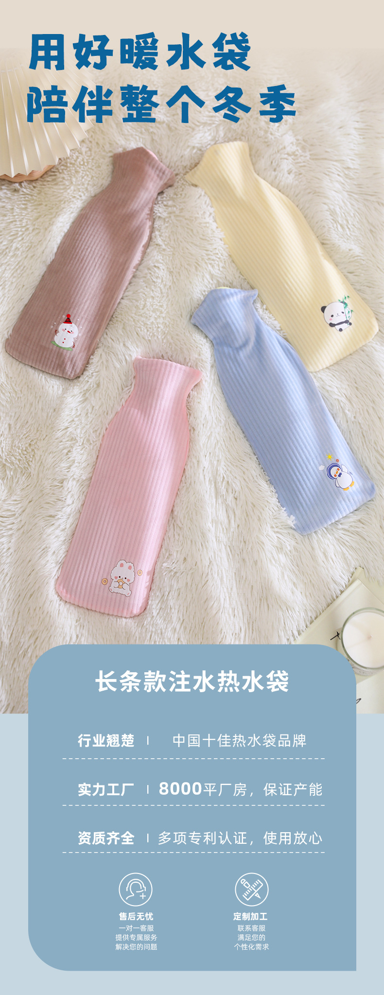 乐雪儿长条热水袋灌水大号加厚布套防爆PVC注水式可爱暖手宝批发