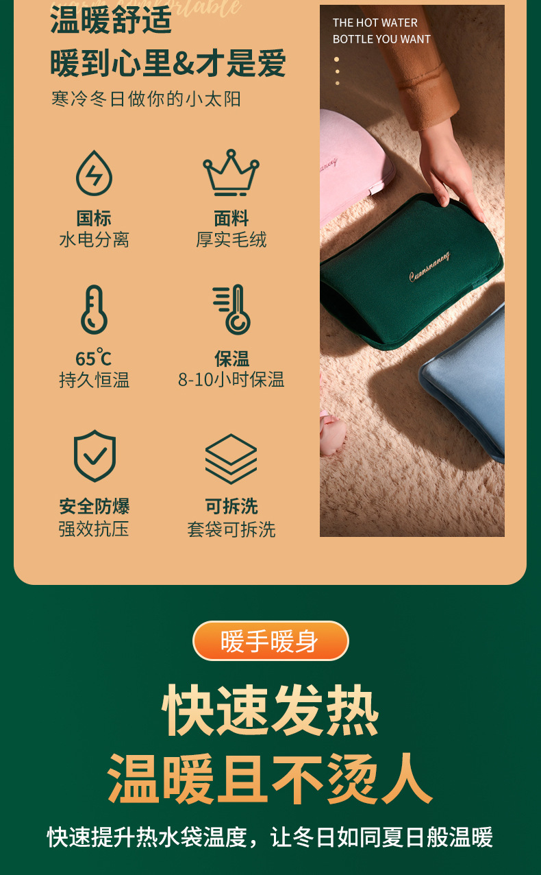 国标电热水袋充电暖水袋防爆暖宝宝暖手宝暖肚子暖手袋被窝神器