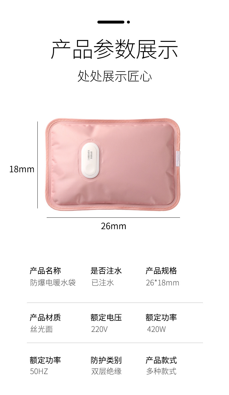 热水袋充电加热防爆国标U型管加热水电分离暖手宝丝光内胆暖水袋