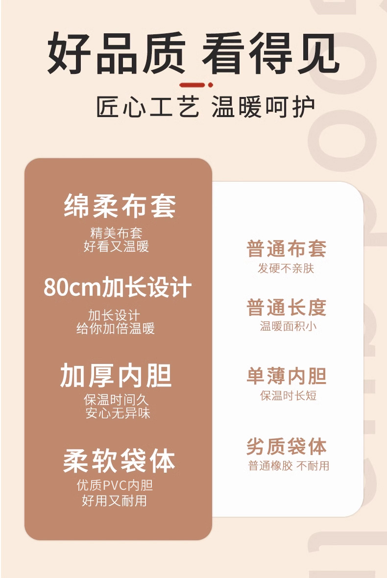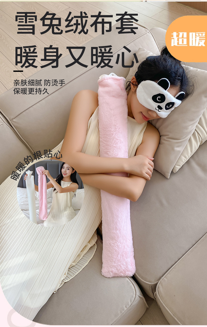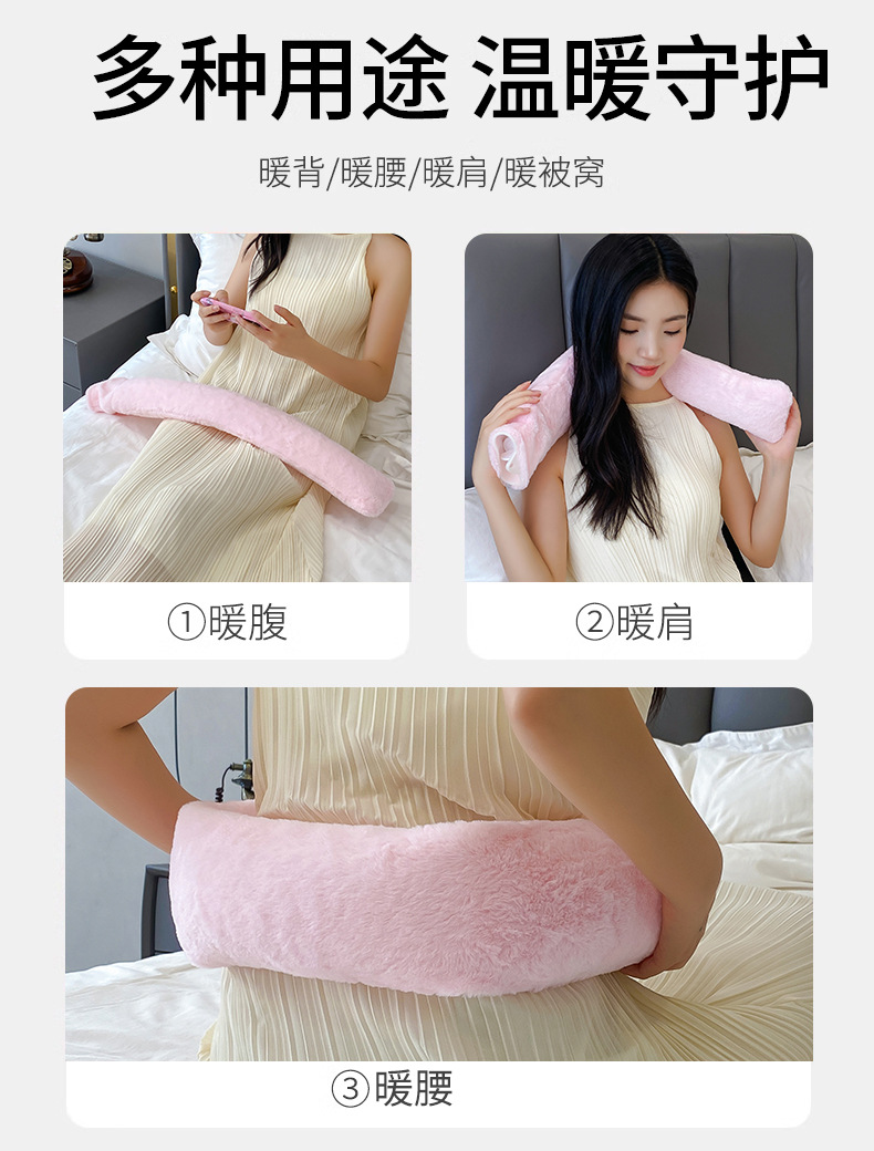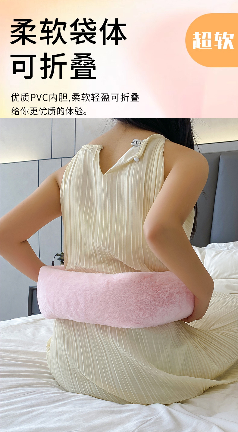 跨境长条注水围腰PVC热水袋加长加大暖肚子暖腰毛绒暖手宝暖水袋