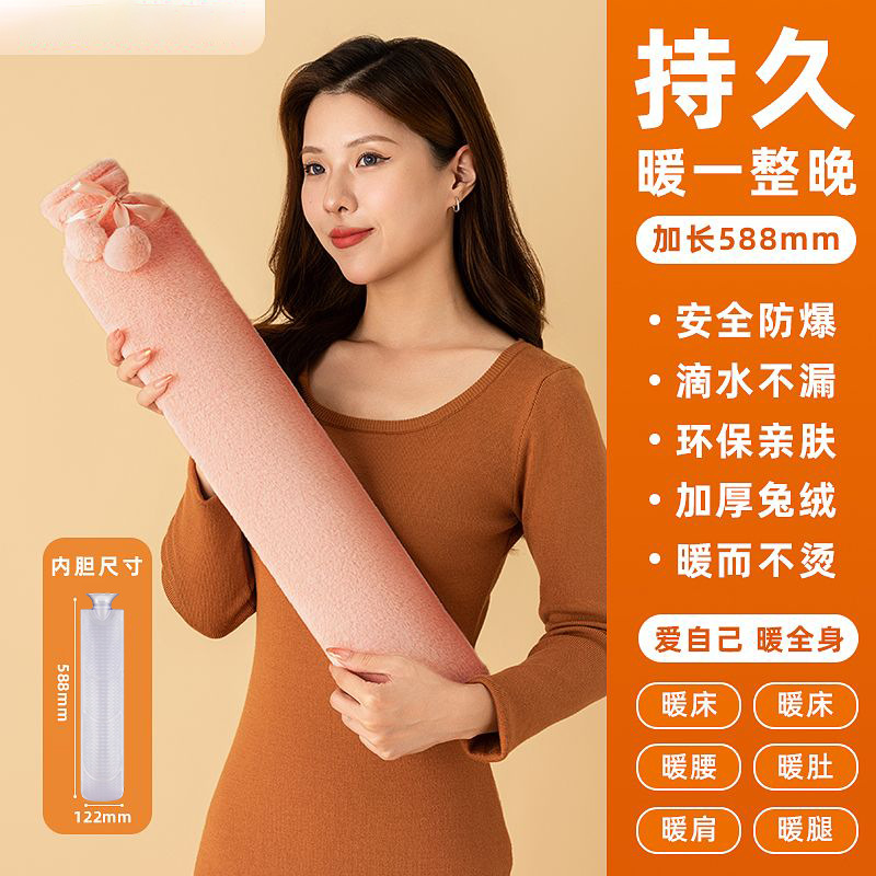 严选长条注水热水袋超长暖手防爆暖手宝灌水毛绒加长暖手袋暖水袋