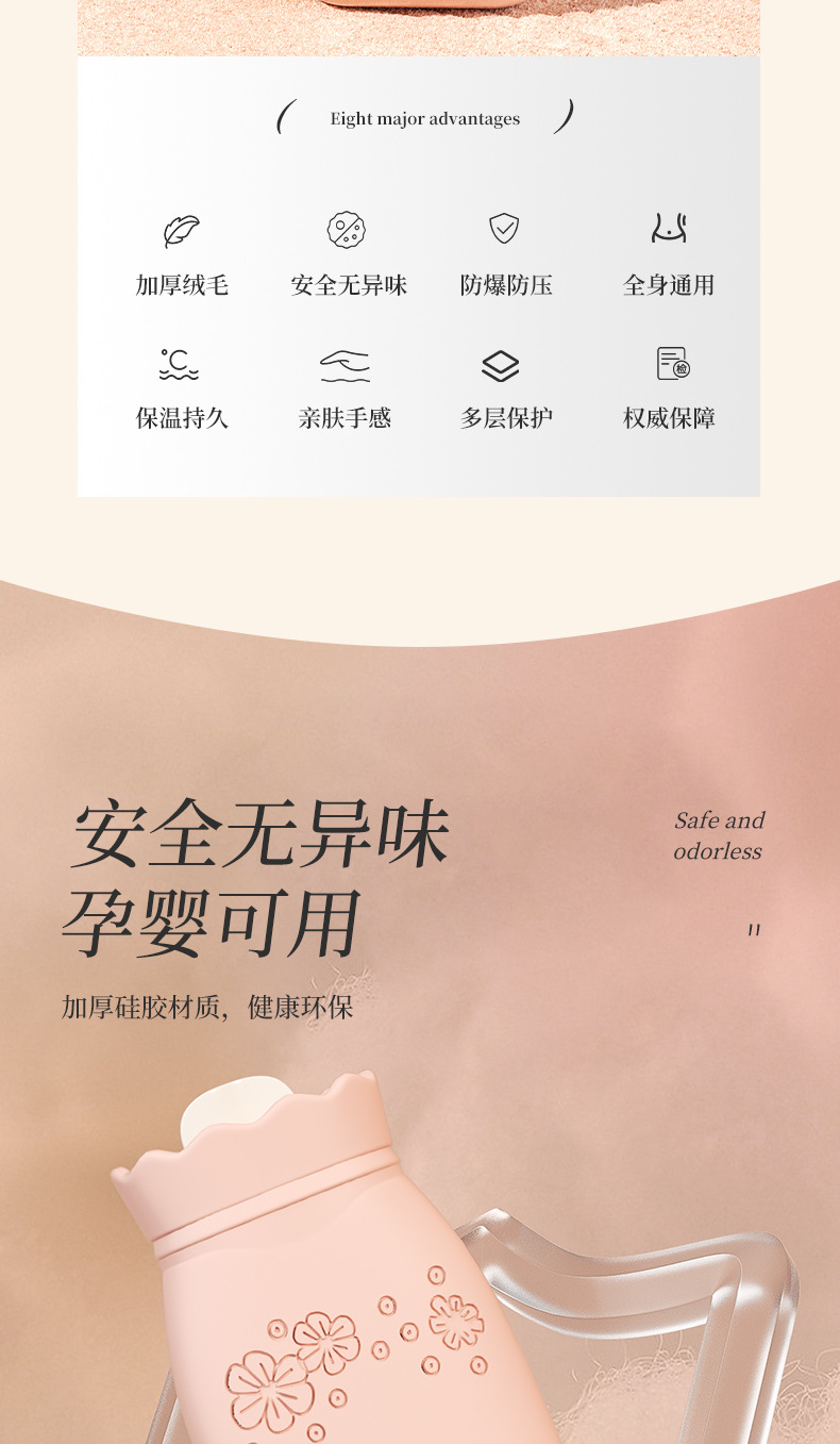 太阳花硅胶热水袋暖手暖水袋便携学生注水暖宝宝女冬日毛绒暖手宝