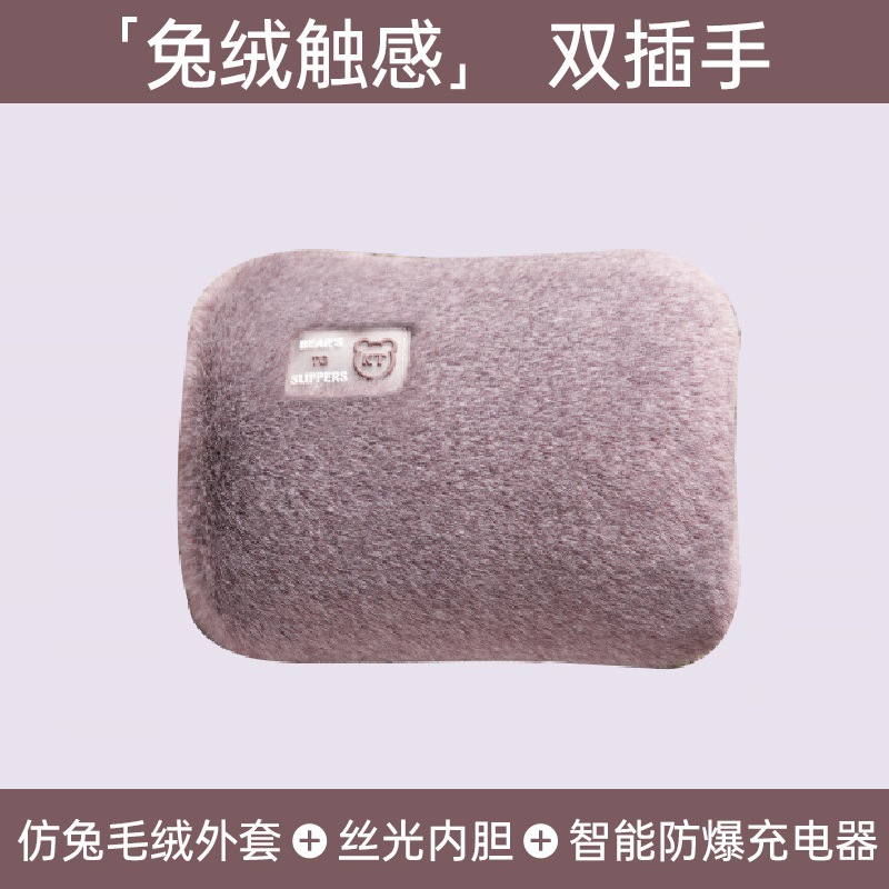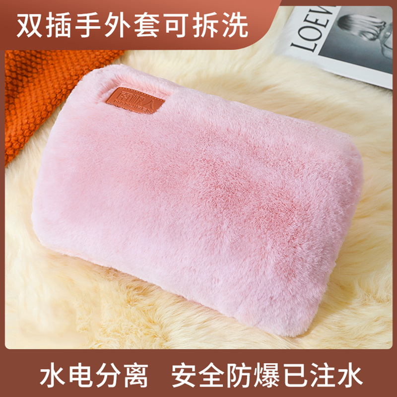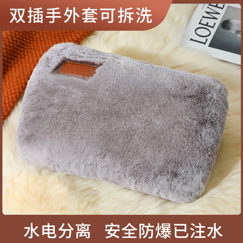 南极人短毛长毛充电热水袋 暖手宝毛绒双插手暖水袋