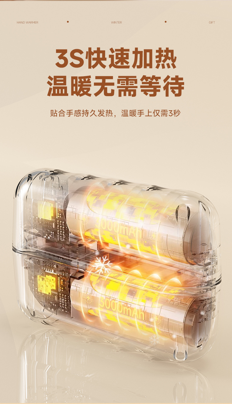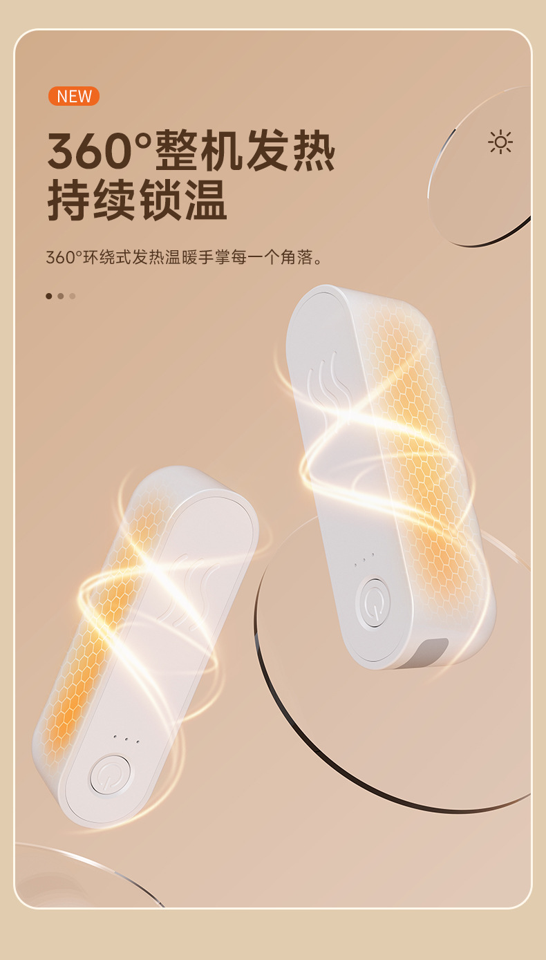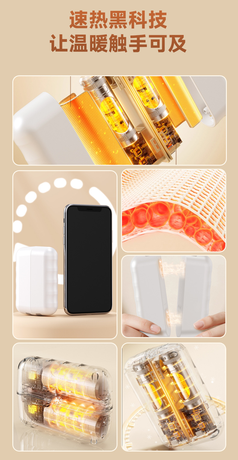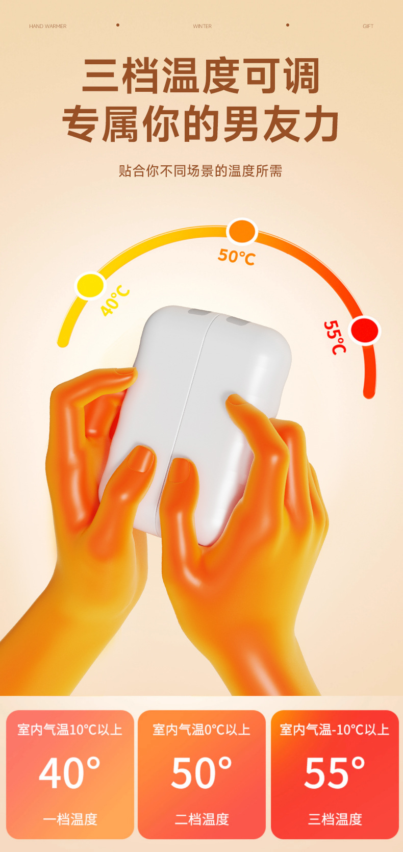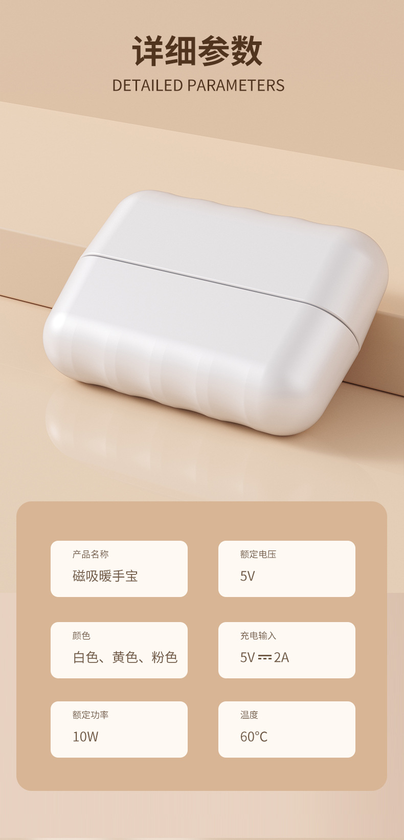 跨境爆款磁吸式迷你便携式C口充电暖宝宝二合一磁吸分体式暖手宝