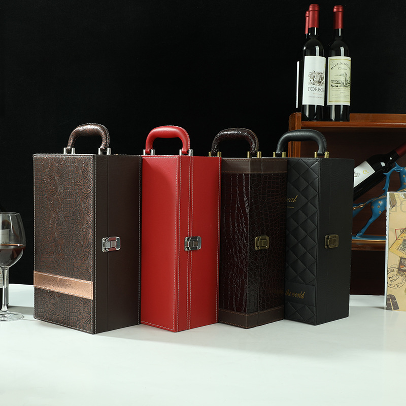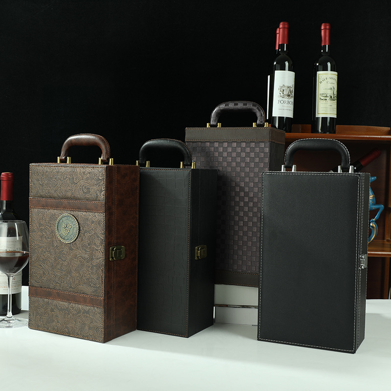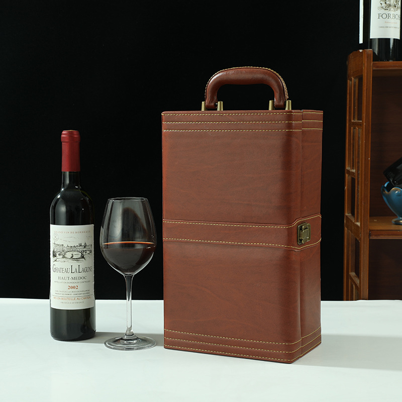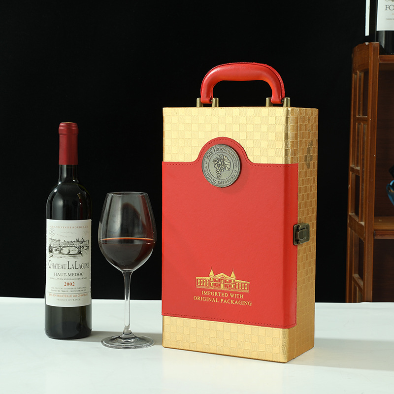 现货双支装红酒盒酒水包装礼盒葡萄酒手提皮盒 印字加工 一件代发