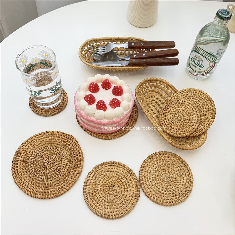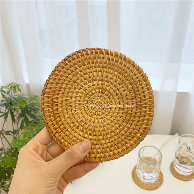 Z655ins风手工藤编杯垫茶壶热水垫编织餐垫碗垫隔热垫 餐具拍照道