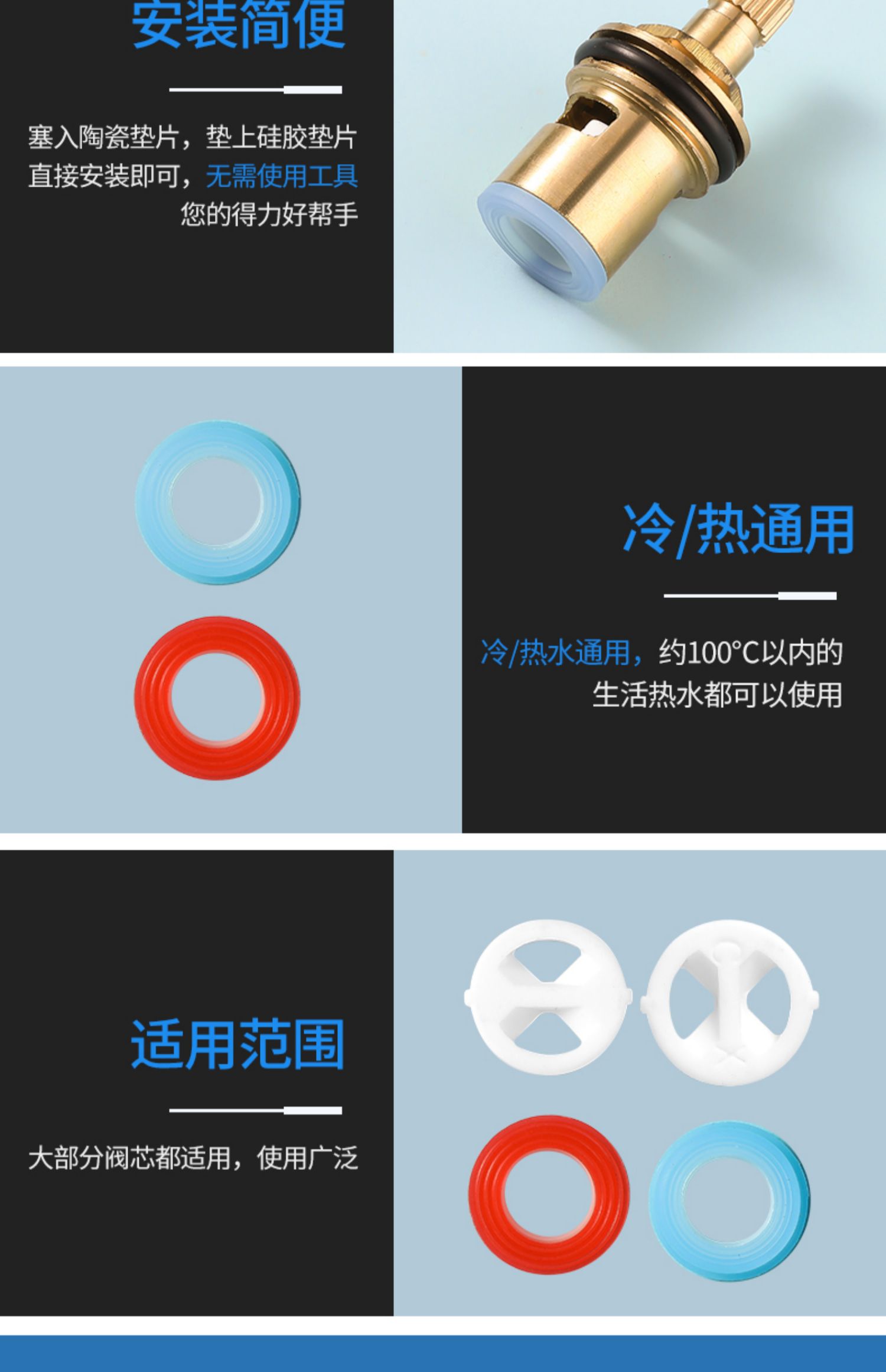 快开冷热通用水龙头芯阀阀芯配件大全陶瓷片硅胶垫密封圈龙头繁星