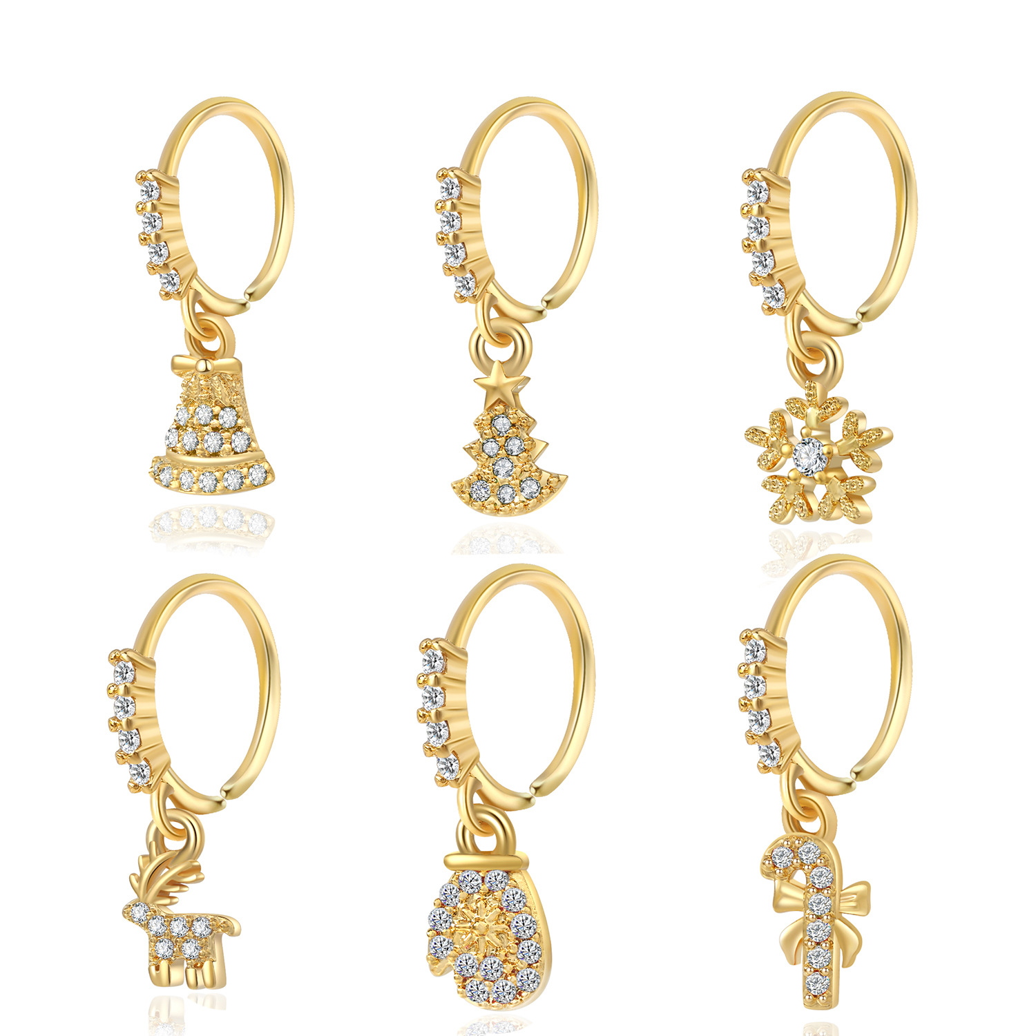 20G锆石圣诞节树帽子棒棒糖鼻环吊坠欧美跨境鼻子穿刺珠宝鼻钉圈