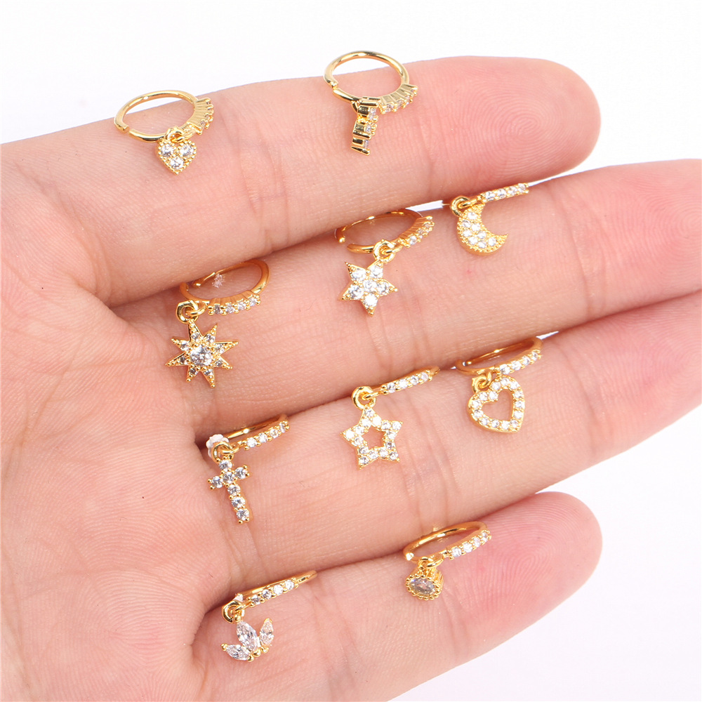新20G吊坠鼻环耳环女蝴蝶月亮星星恶魔眼锆石吊坠鼻环软骨耳鼻环