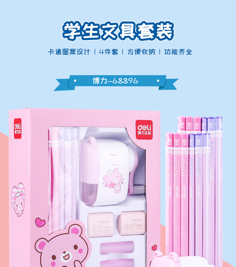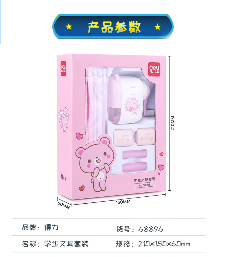 得力文具套装礼盒68896小学生开学季文具礼包文具学习用品卡通可