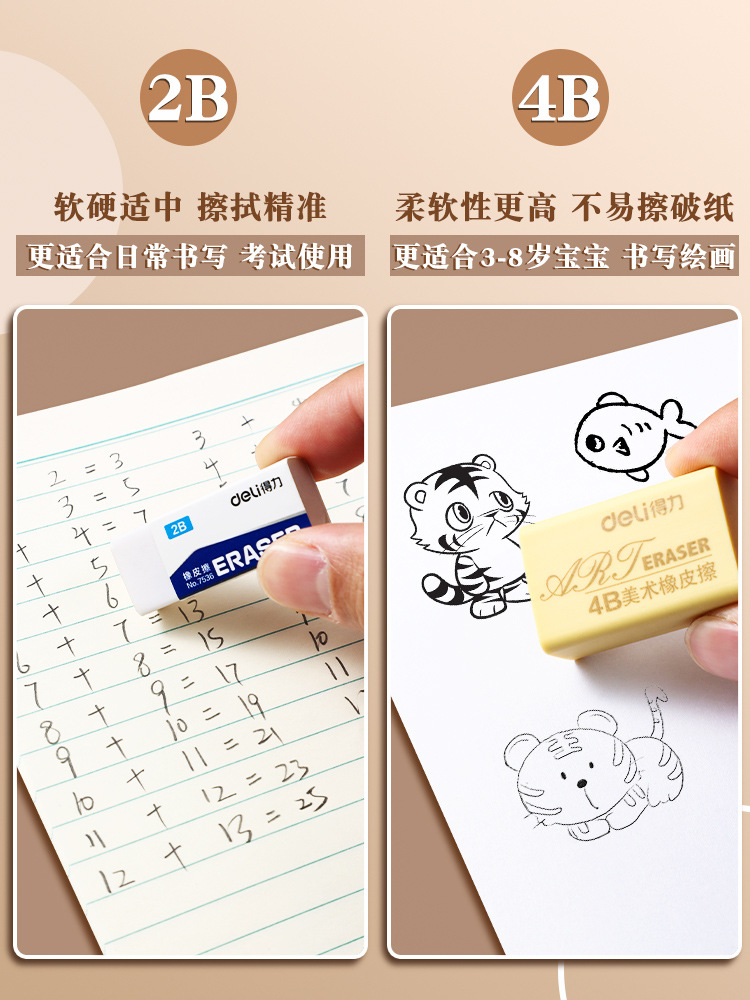 得力7535a橡皮擦 4B绘图考试盒装橡皮12块 学生美术素描橡皮批发