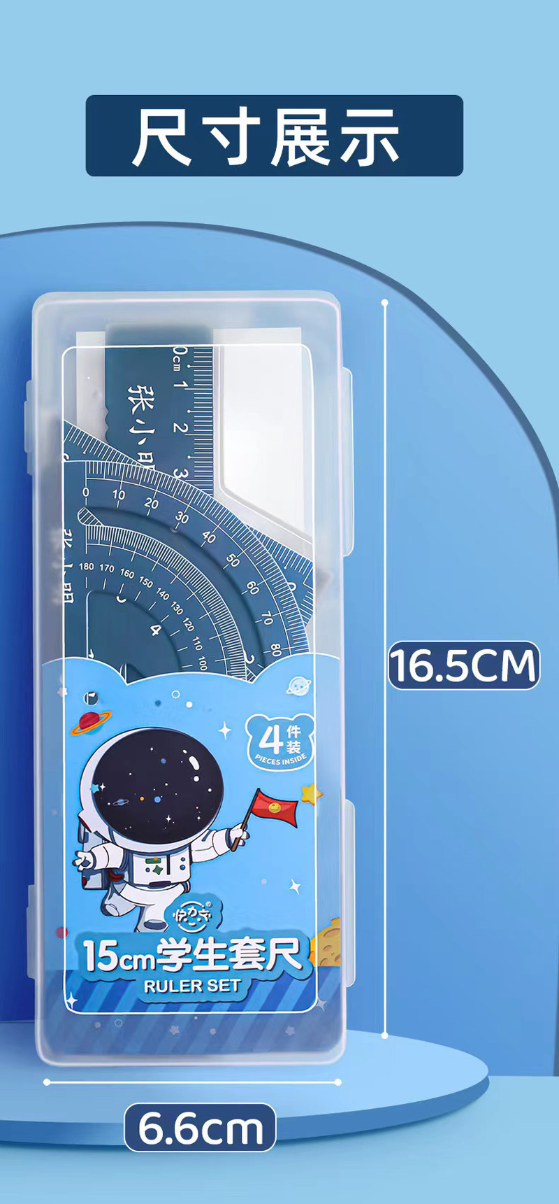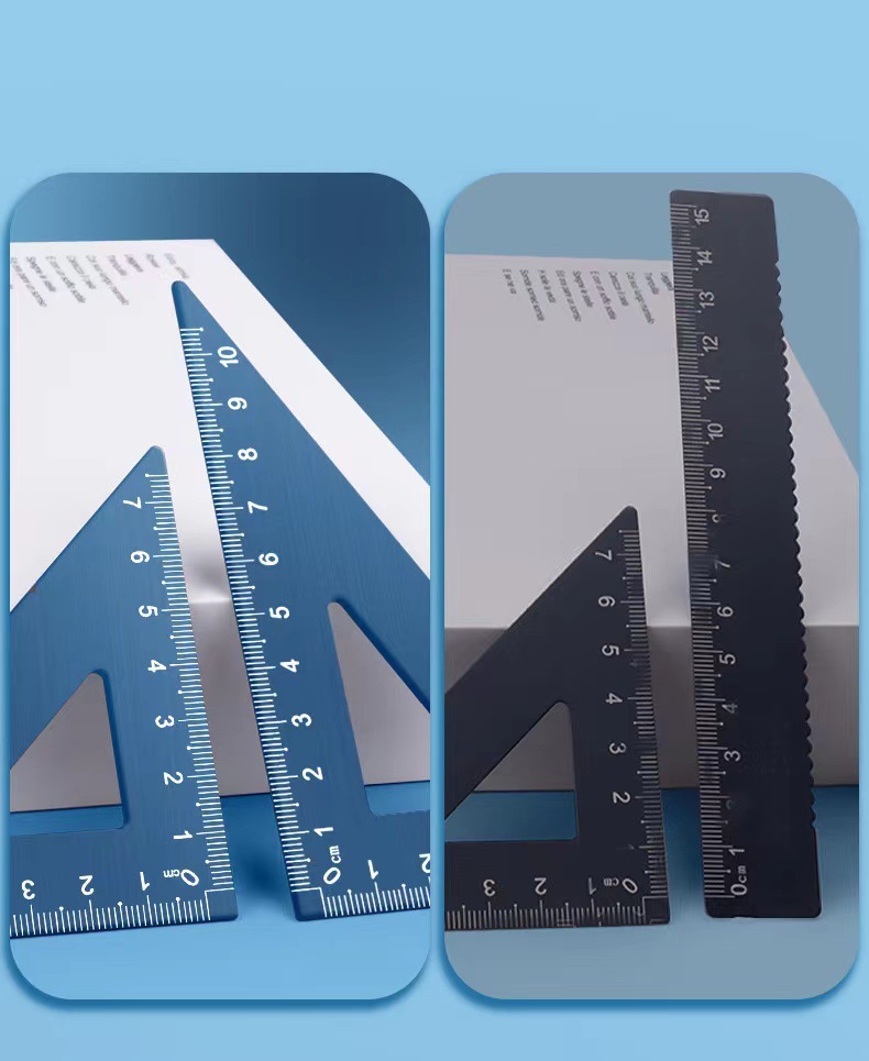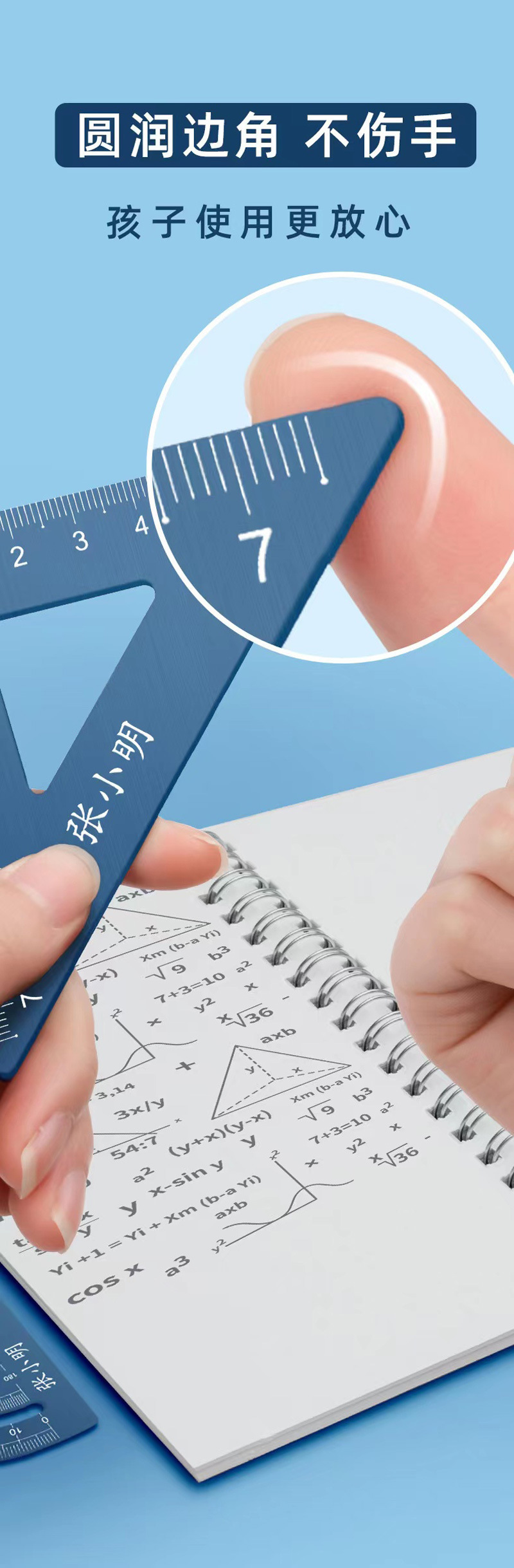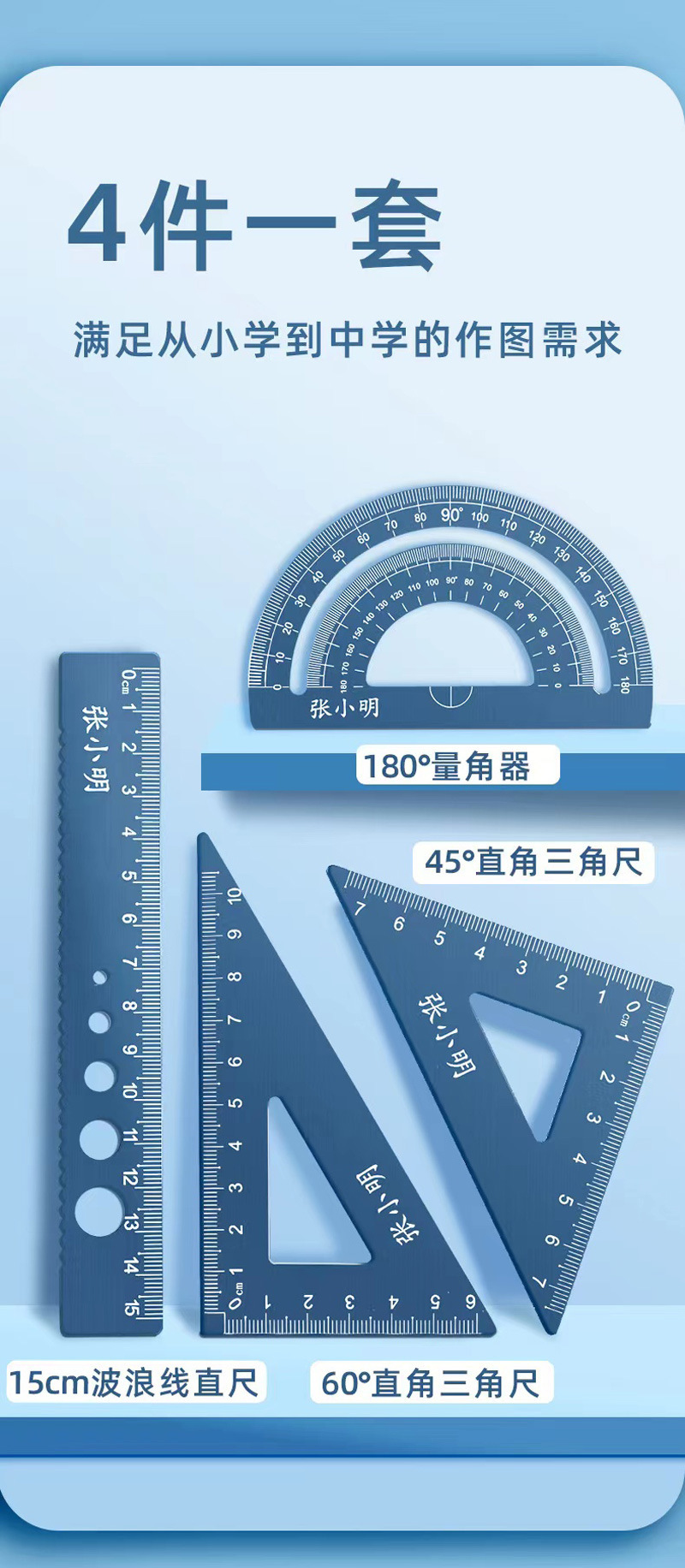 金属尺子四件套中小学生直尺三角尺量角器铝合金刻字套装尺子批发
