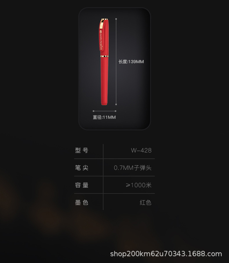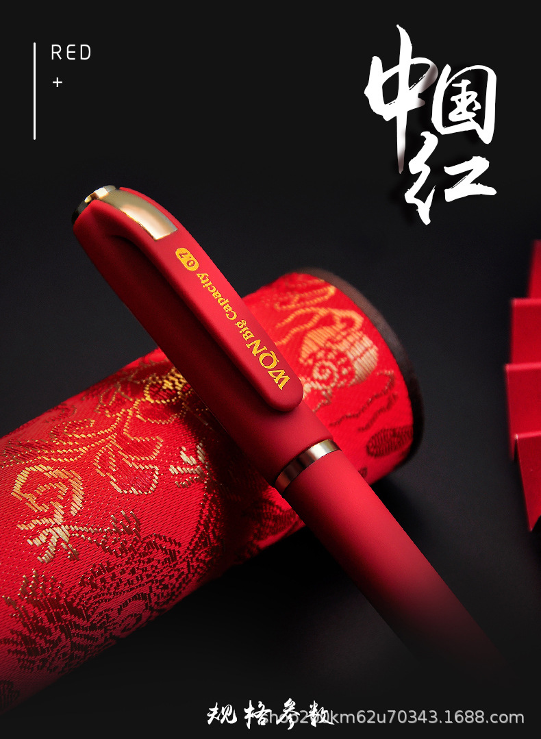 五千年W-428黑色大容量中性笔红色0.7mm笔碳素书法练字老师推荐