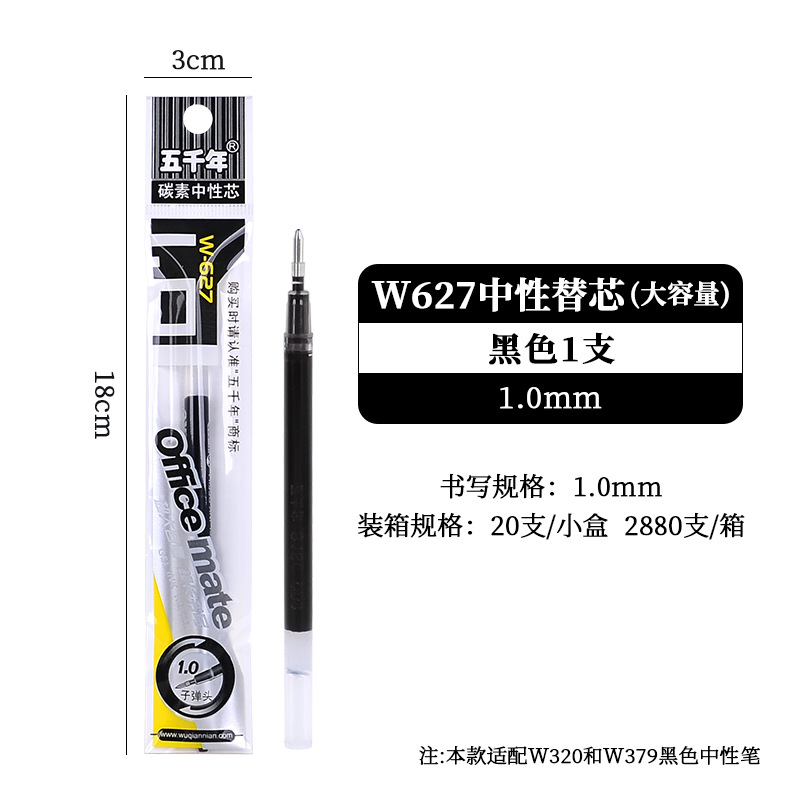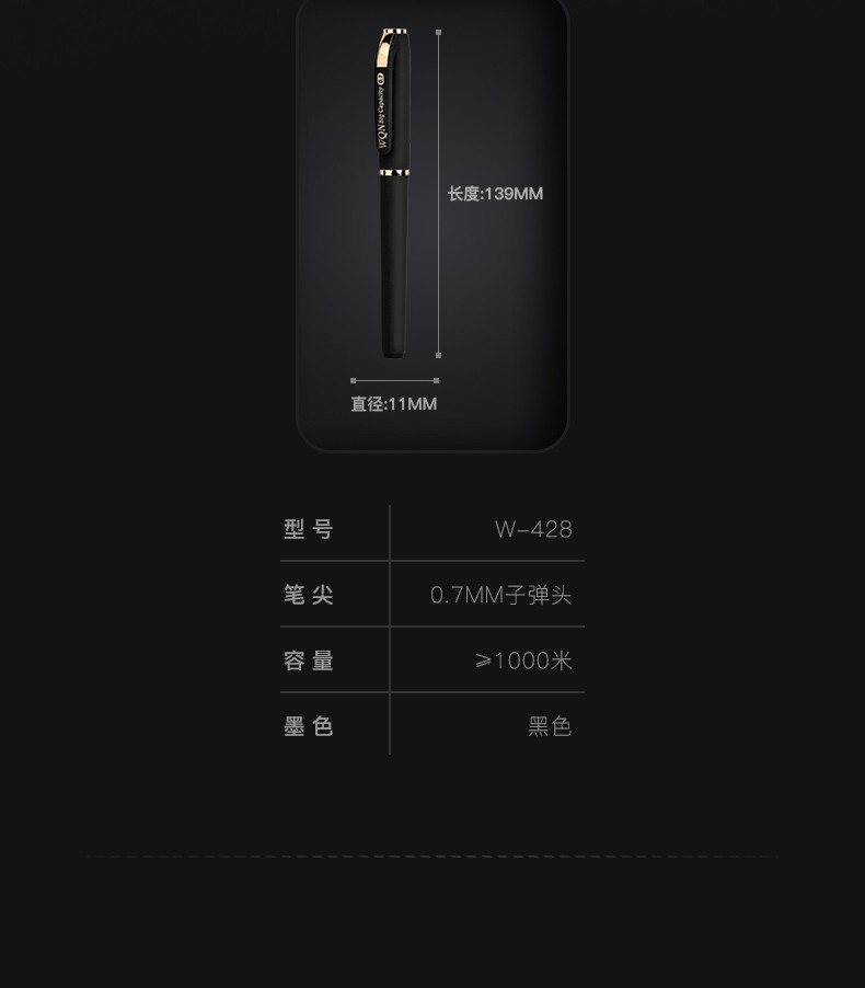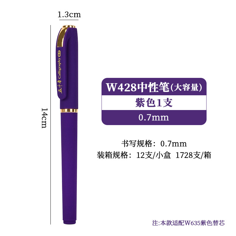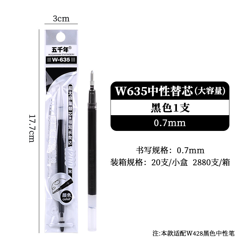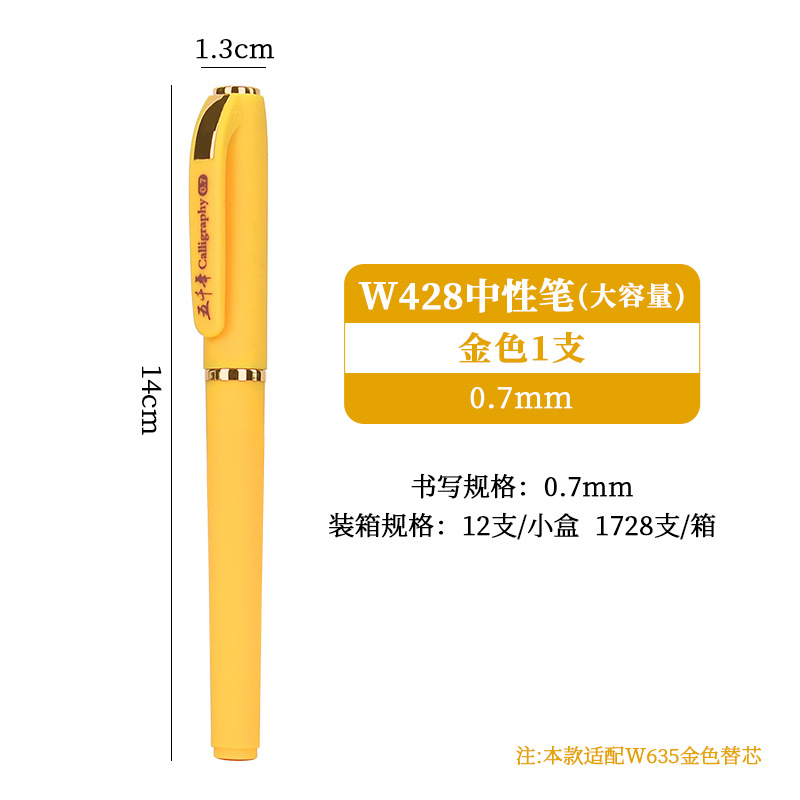 五千年W-428大容量硬笔书法0.7黑色中性笔商务签字笔子弹头碳素笔
