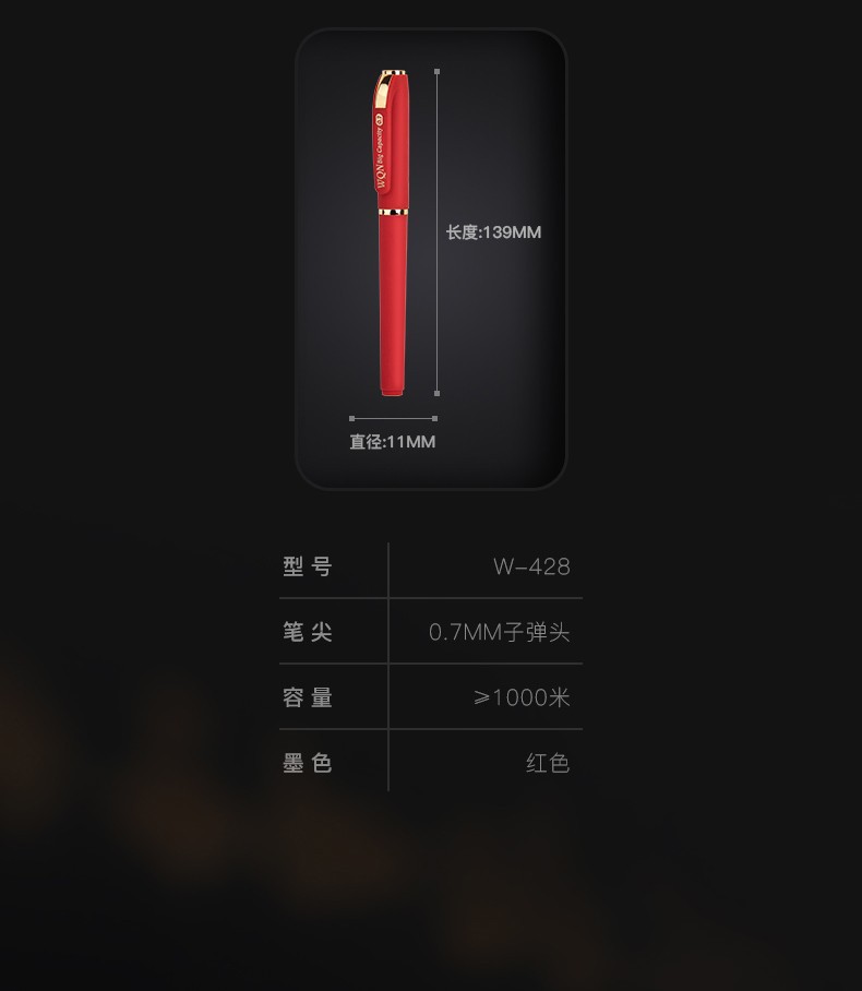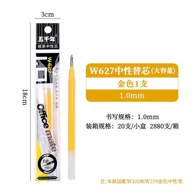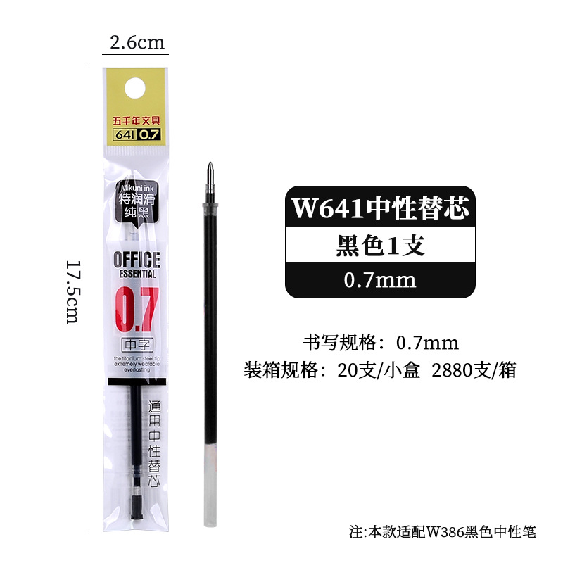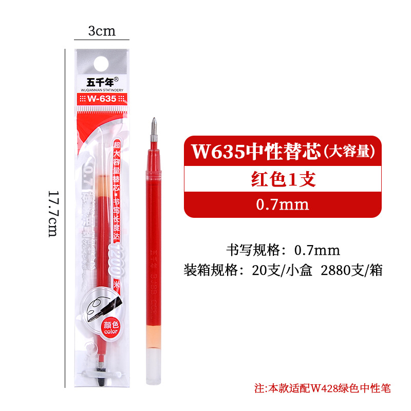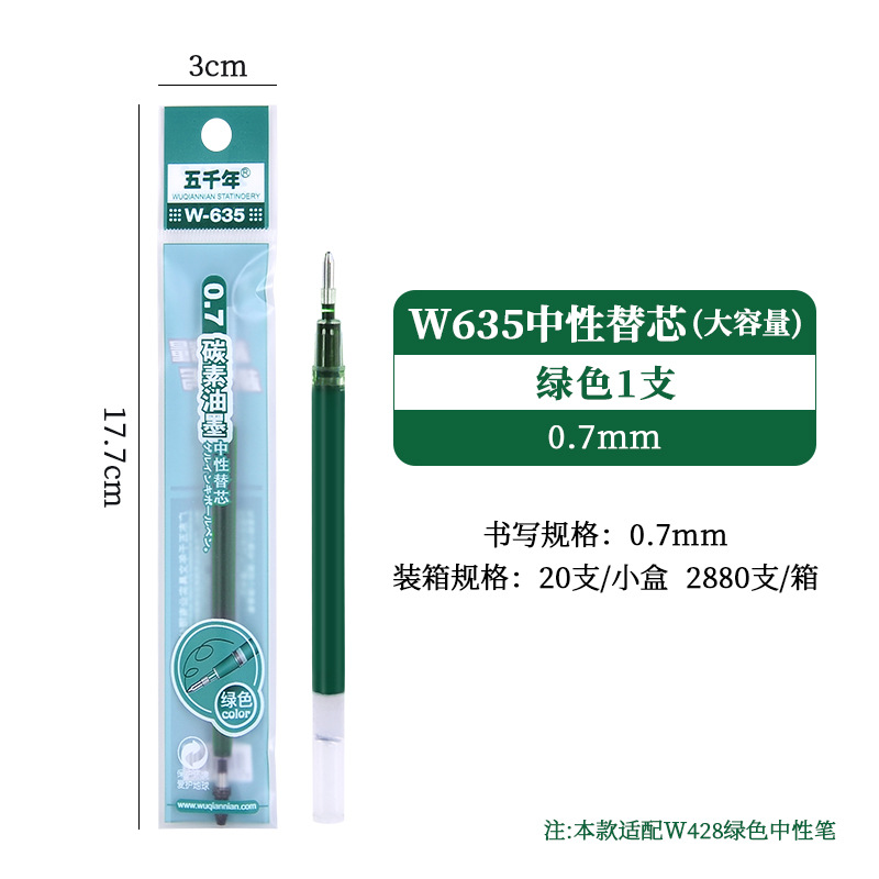 五千年W-428大容量硬笔书法0.7黑色中性笔商务签字笔子弹头碳素笔