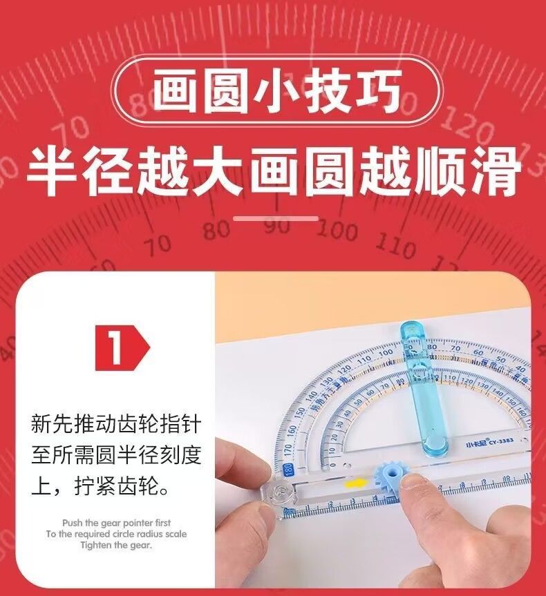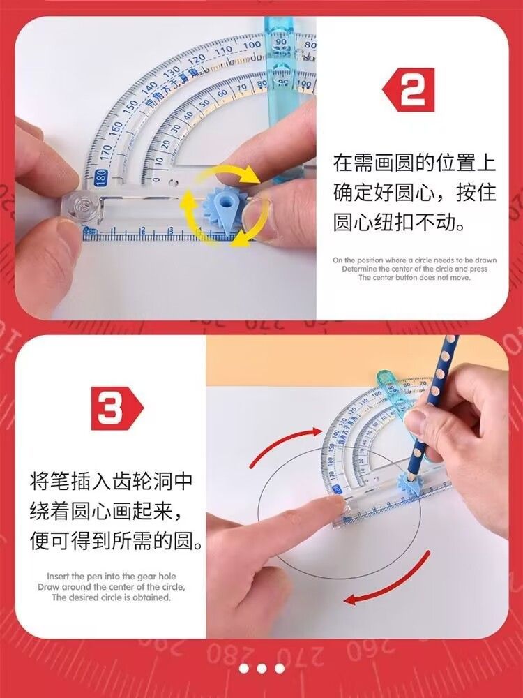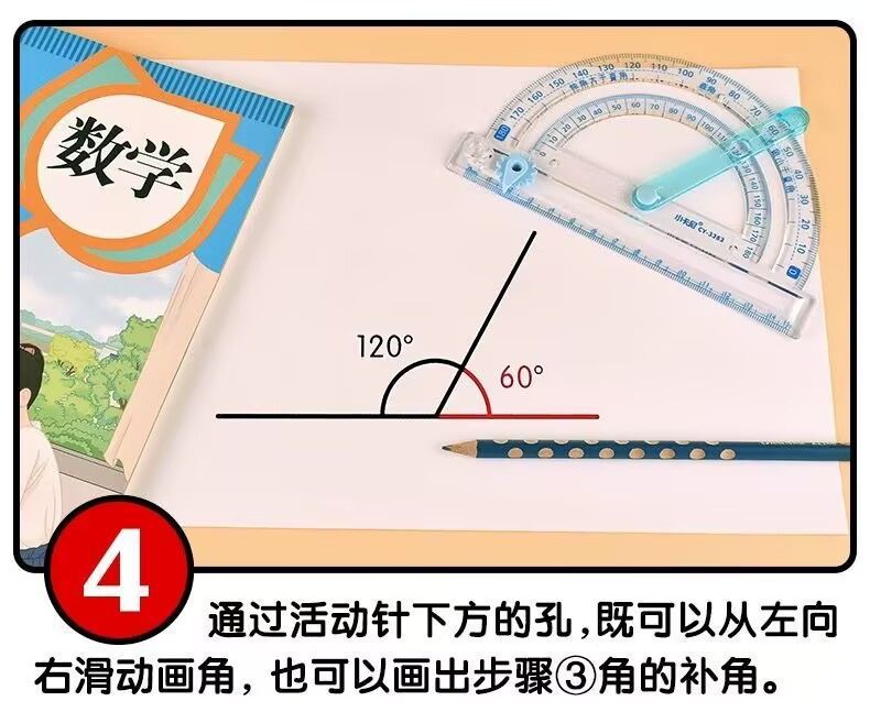 四合一多功能活动角直尺量角器画角圆规角尺教材同步角的演示