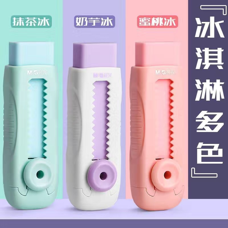 晨光推动橡皮擦彩色推动擦拭无屑推拉橡皮Q4201/Q4208彩色白色