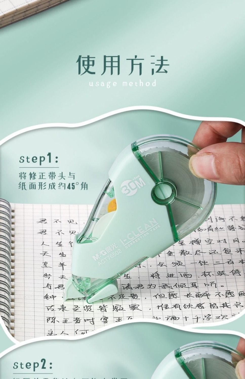 晨光修正带大容量30米耐用少女高颜值初中改正带学生改错带涂改带