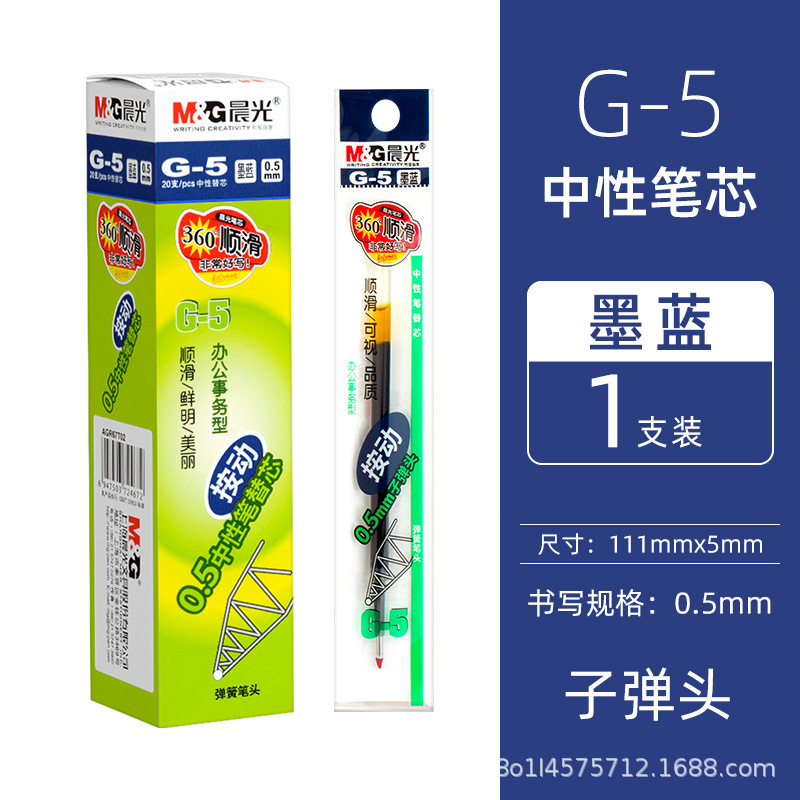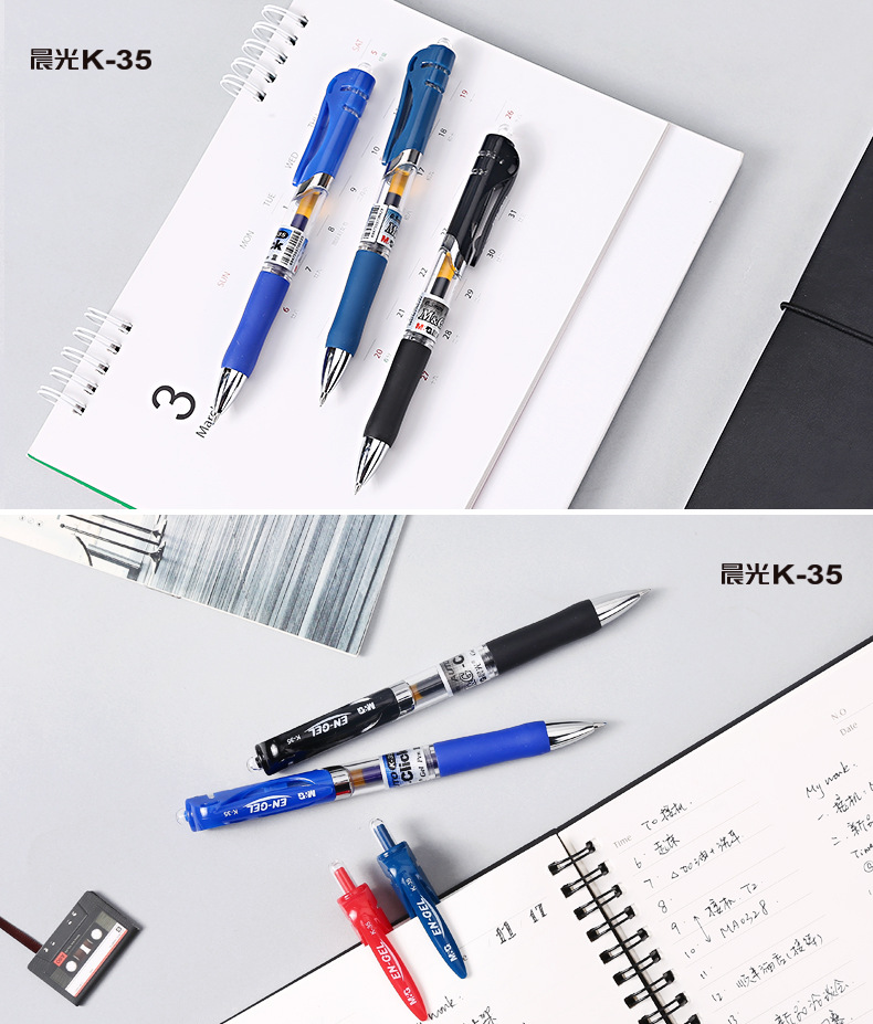 晨光k35按动中性笔水笔笔芯可按压式黑 0.5 签字碳素子弹头红笔