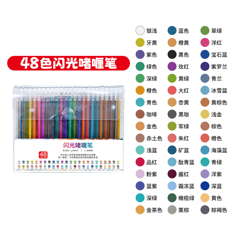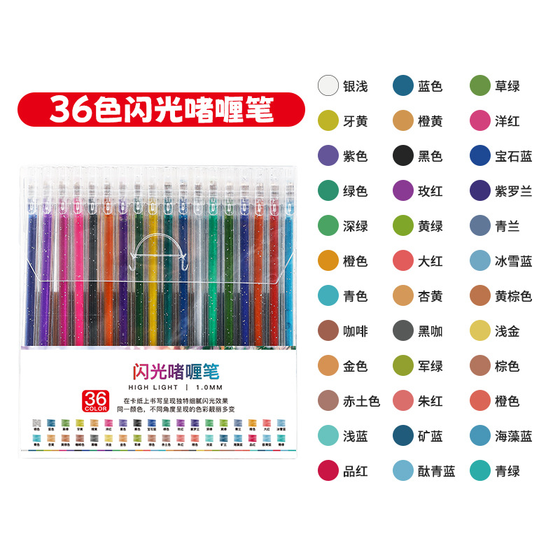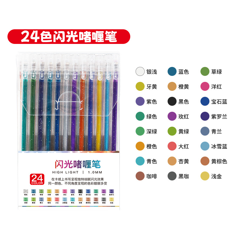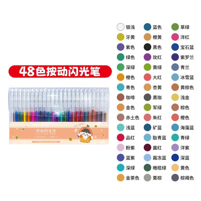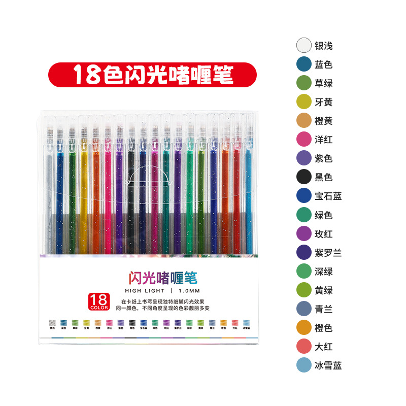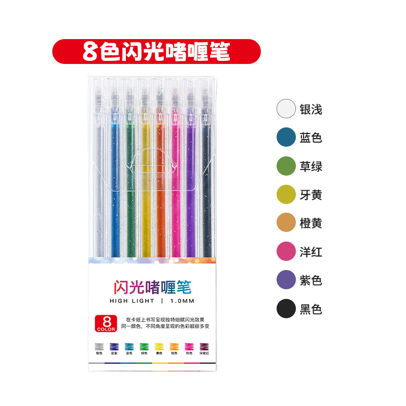抖音按动闪光笔亮晶晶彩色荧光笔套装学生手账笔文具中性笔电商
