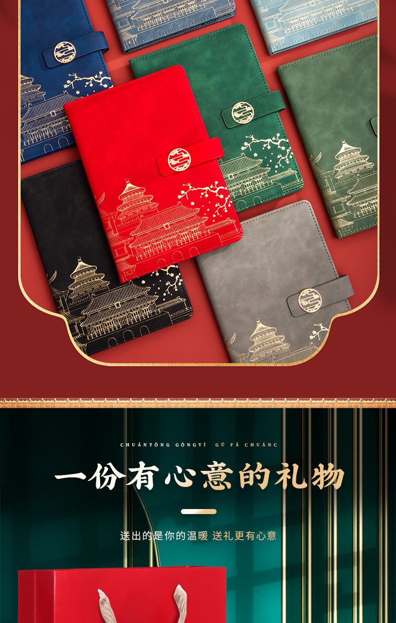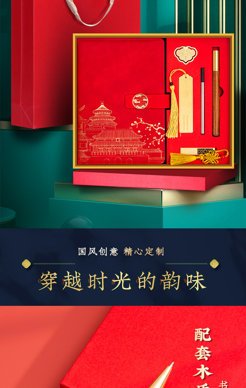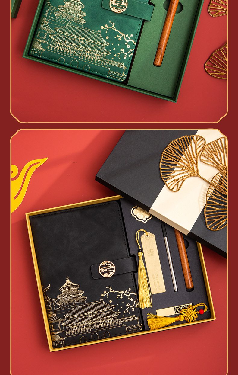 a5国潮笔记本商务办公笔记本礼盒套装企业中国风记事本子定制logo