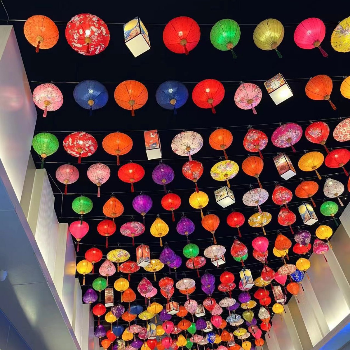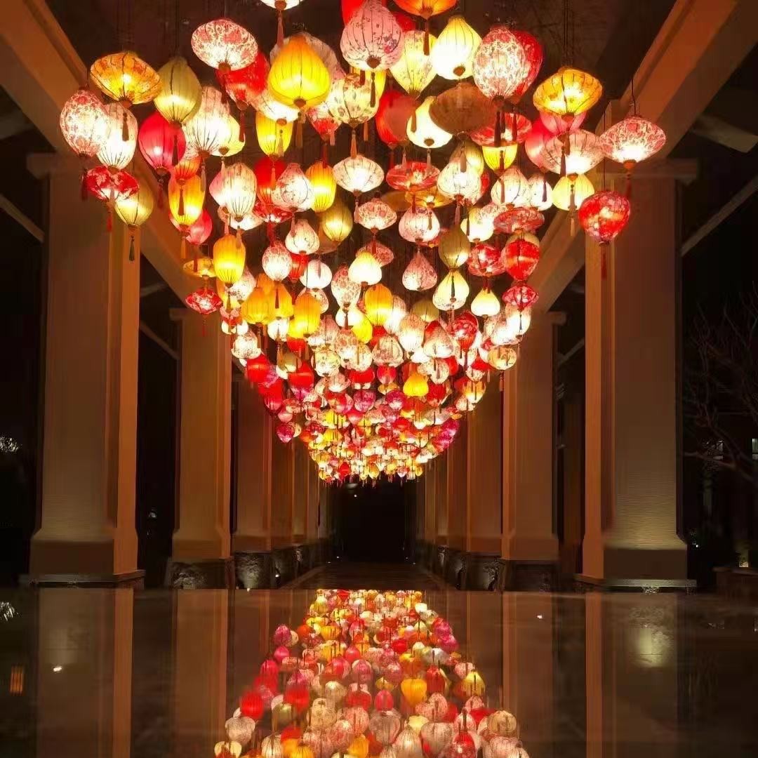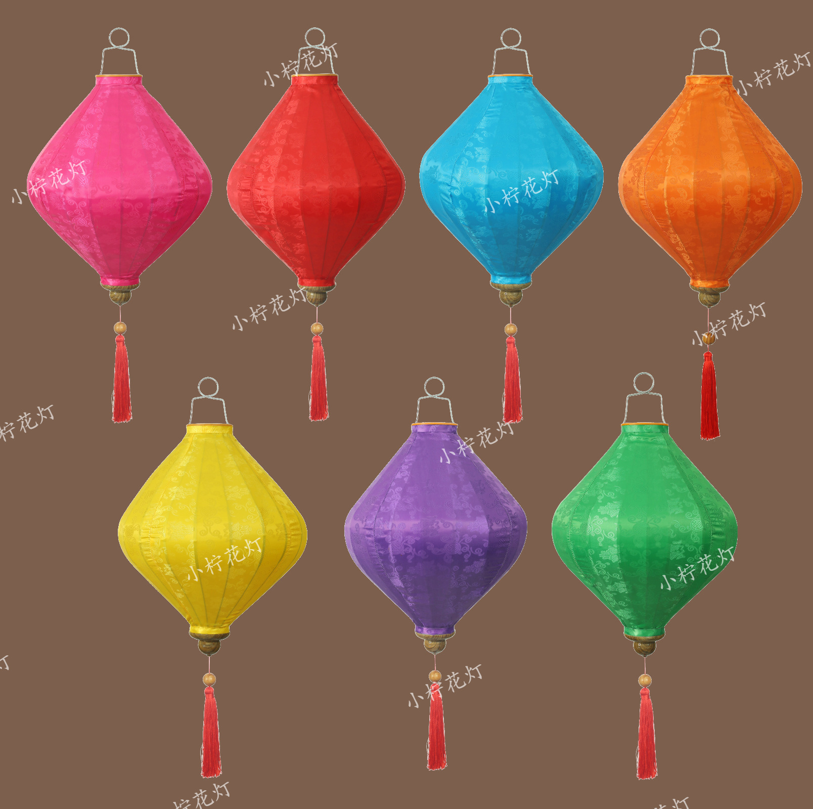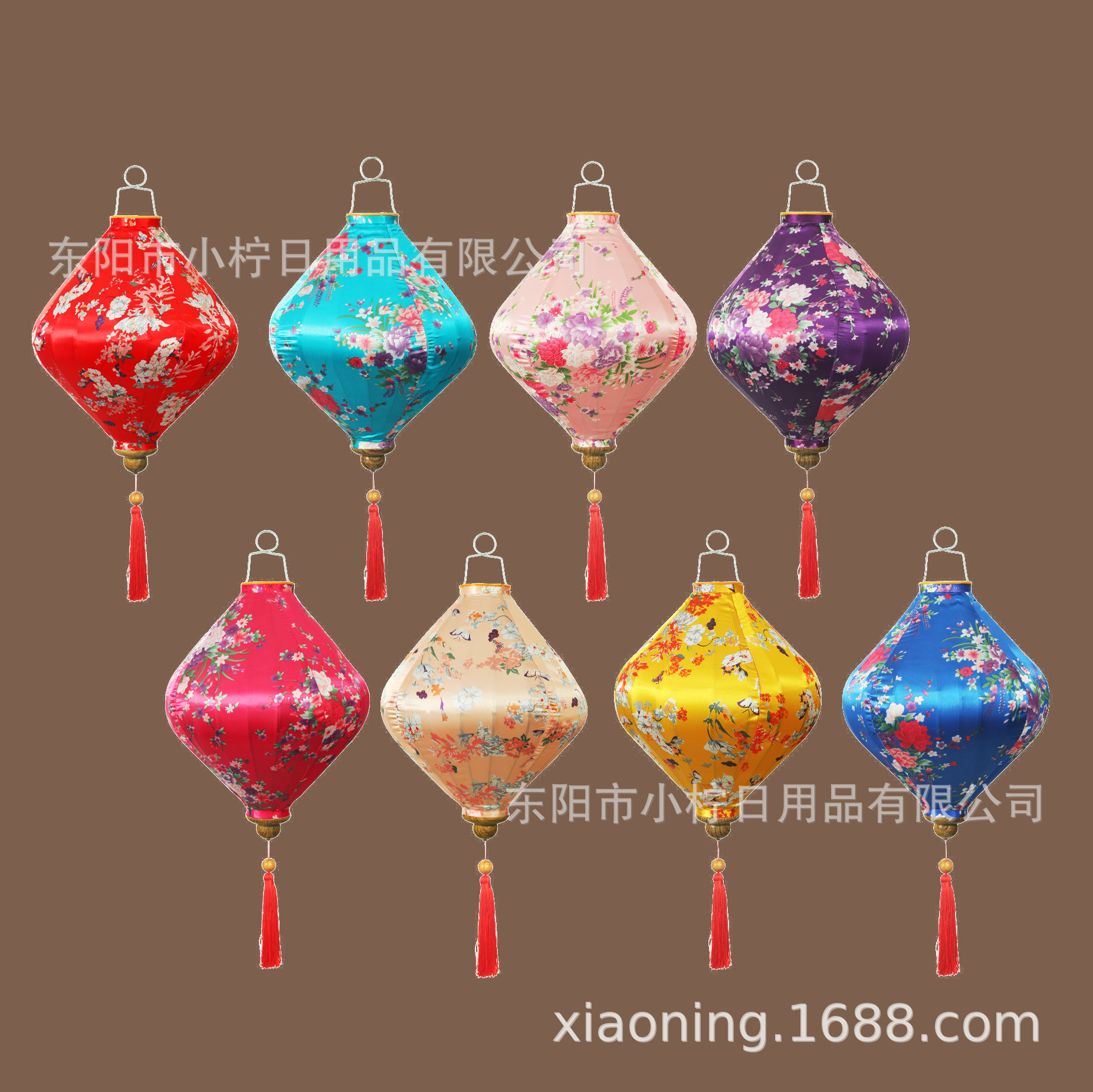 元宵节新年钻石景观挂饰花灯户外异形中式仿古复古风越南绸缎灯笼