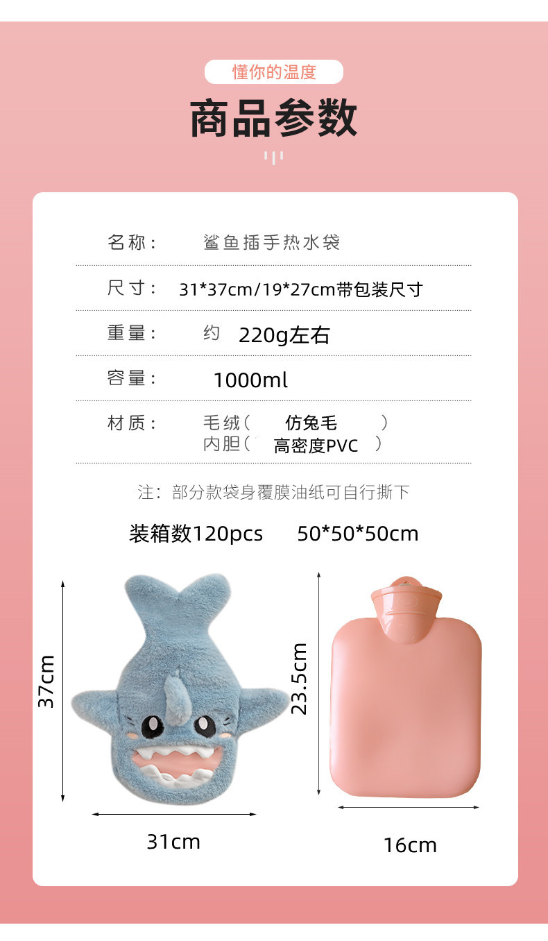 新款可爱毛绒插手款注水热水袋加厚防爆PVC暖水袋可拆洗厂家批发