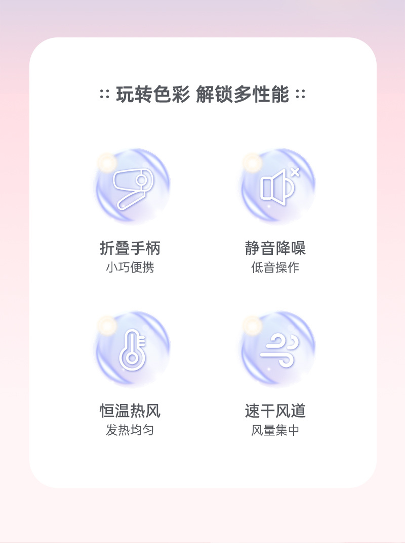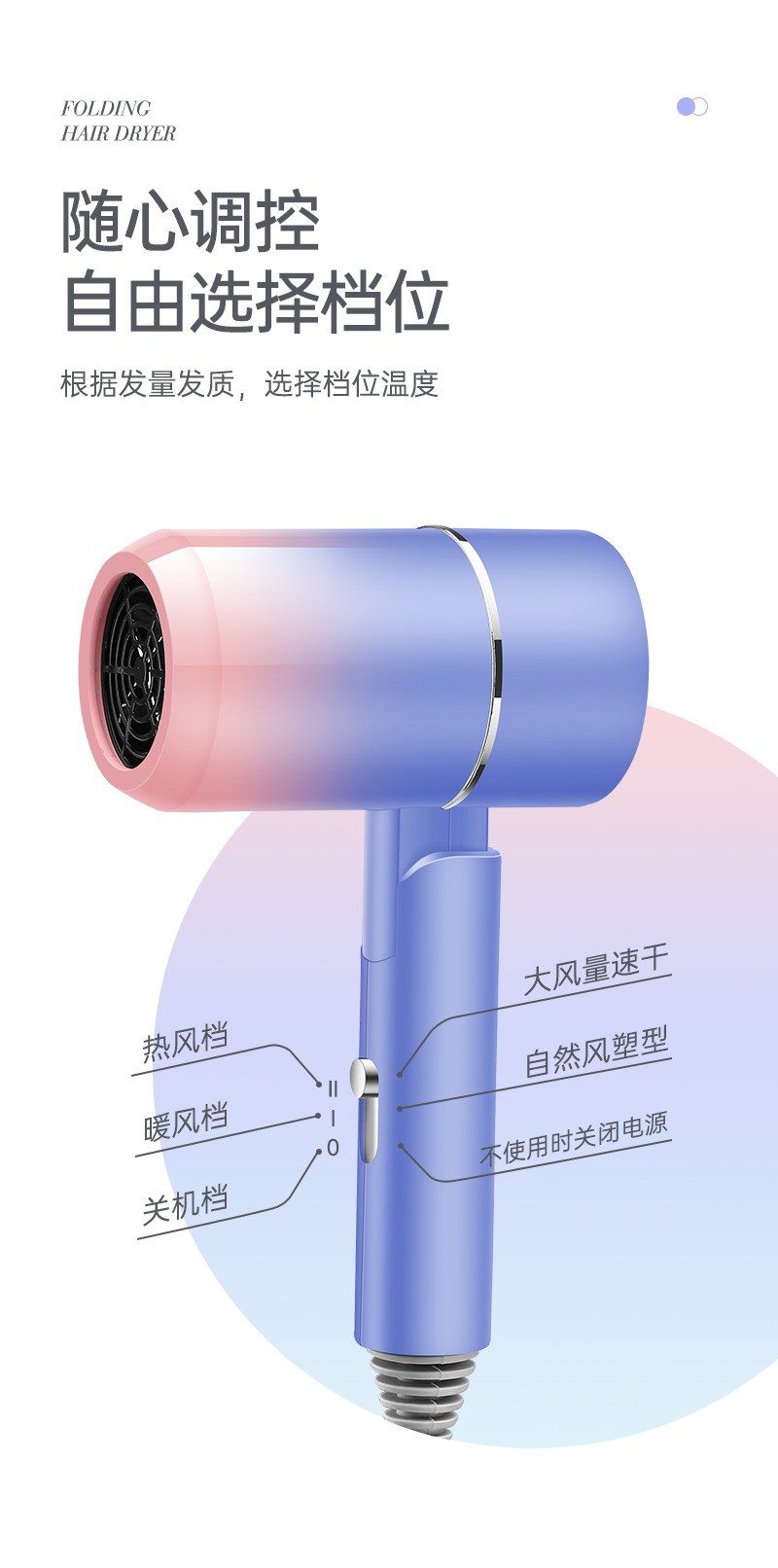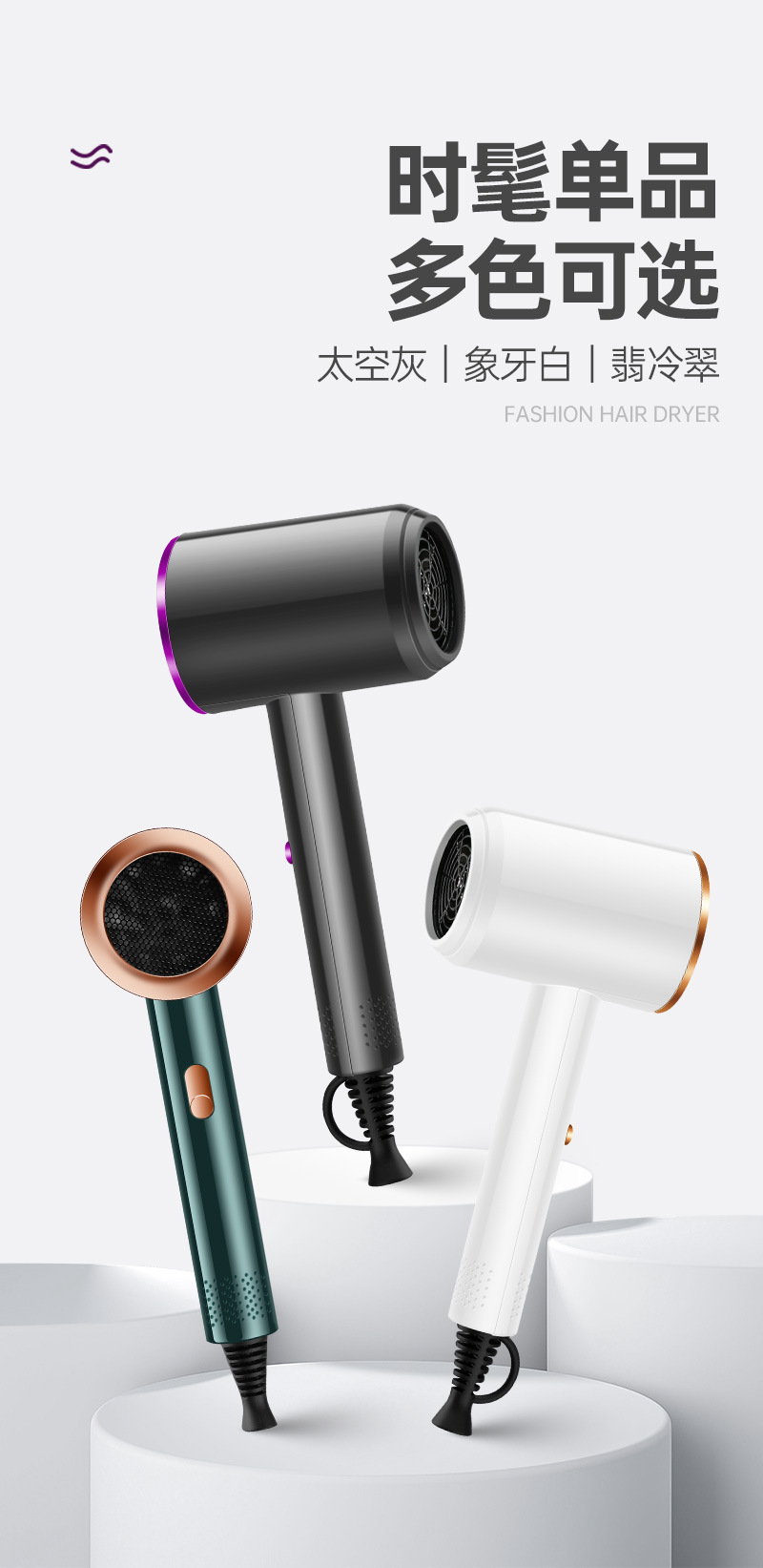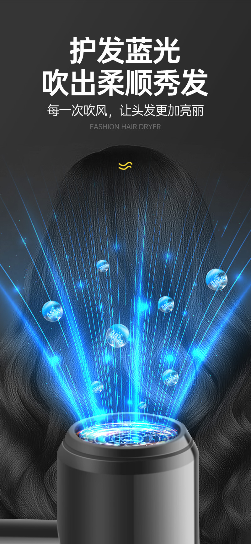 新款网红吹风机时尚大功率电吹风折叠蓝光发廊冷热吹风筒礼品批发